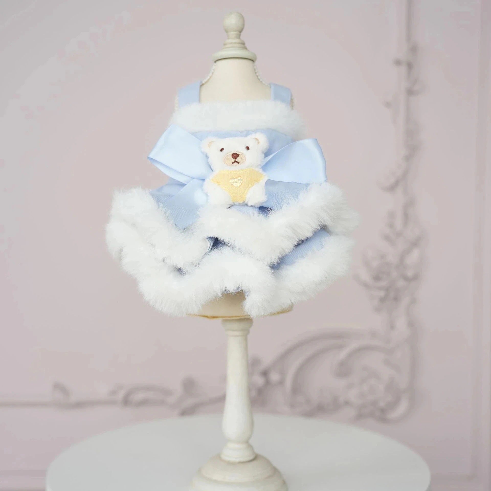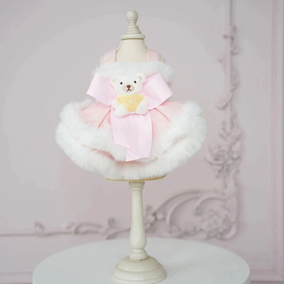 犬の服ペット犬服秋冬新作ファーボーダースリングベアドレステディビションコーギー服