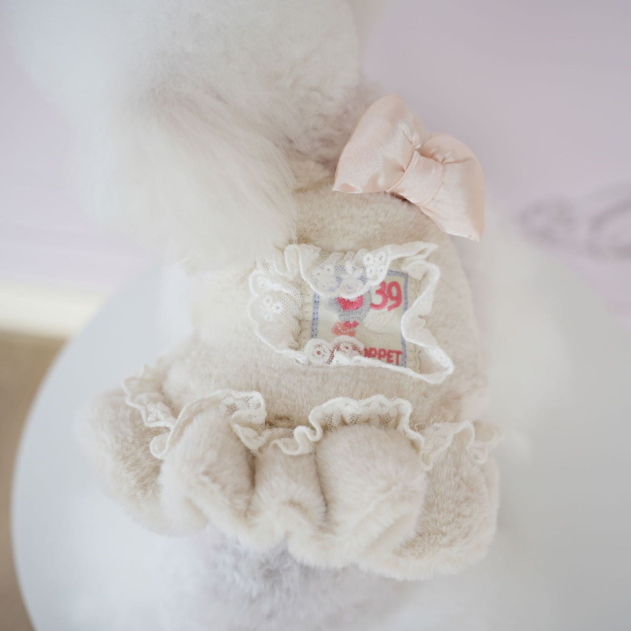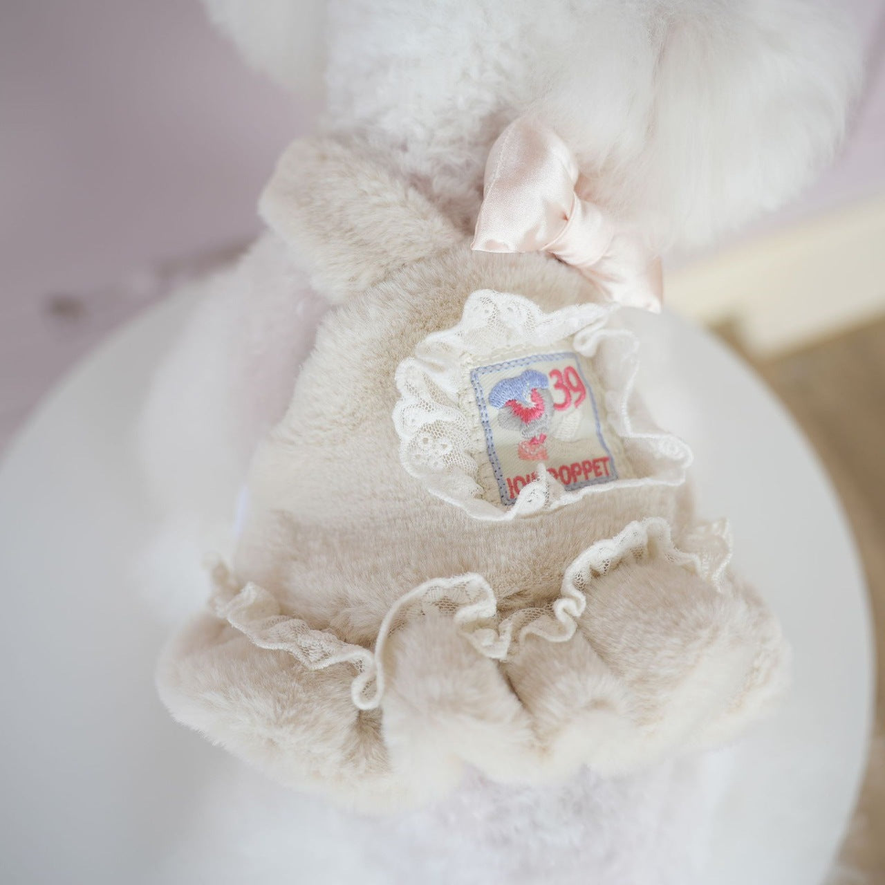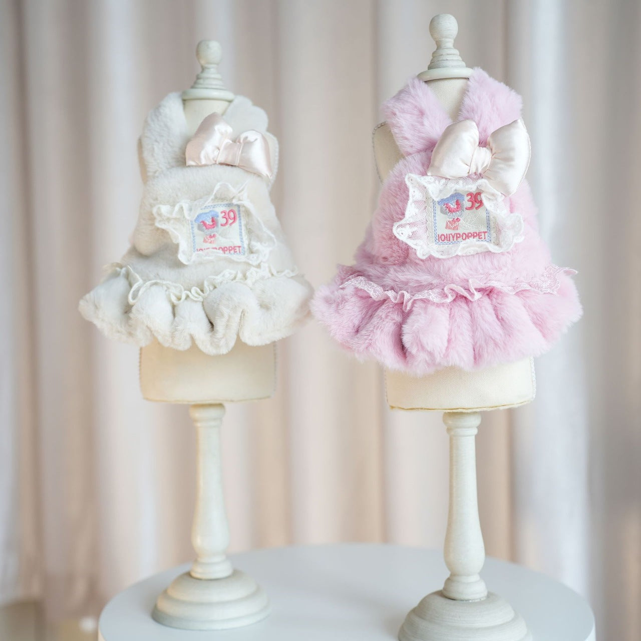 犬の服ペット犬秋冬モデル模造ウサギ毛ホルタードレス猫コールドコート クマテディコート