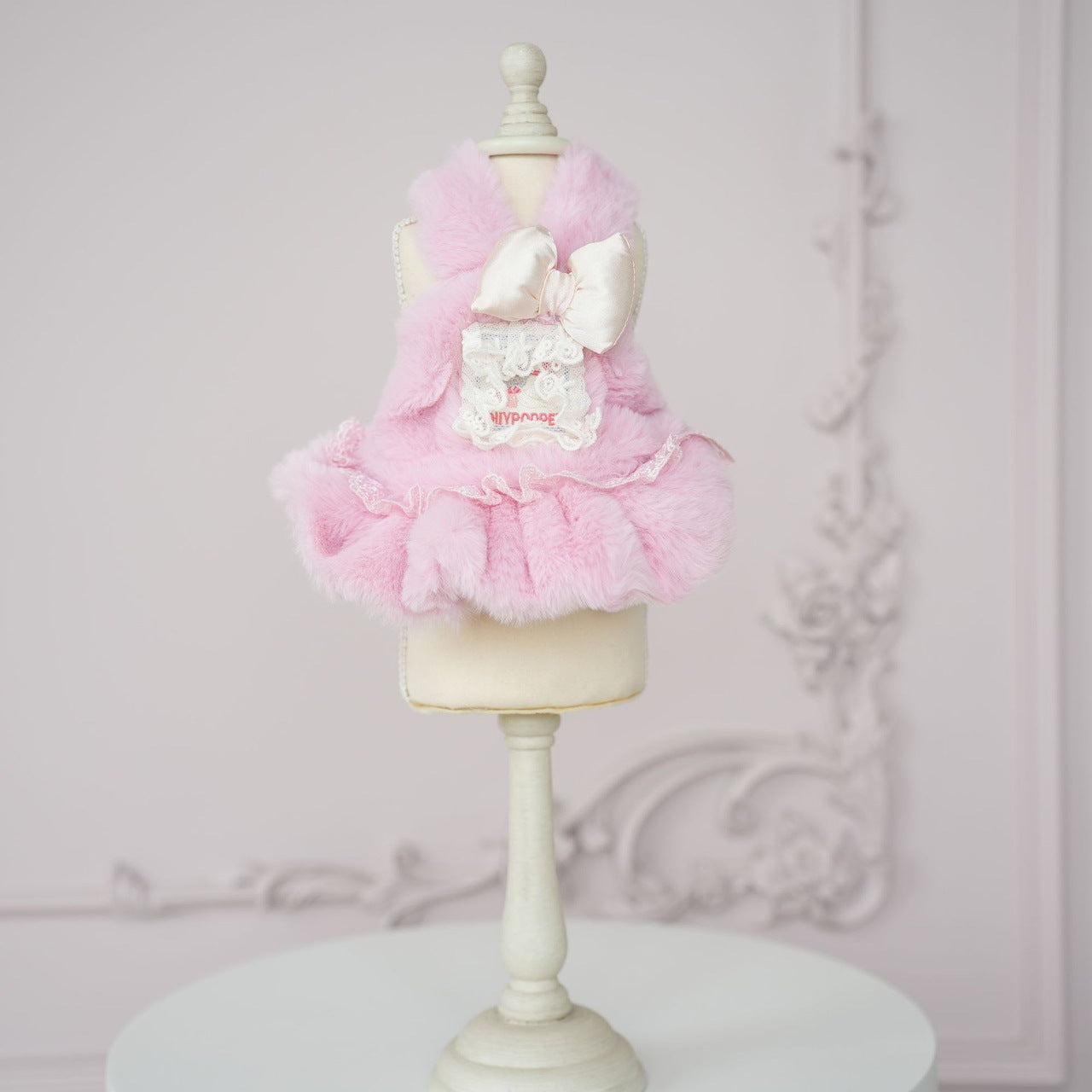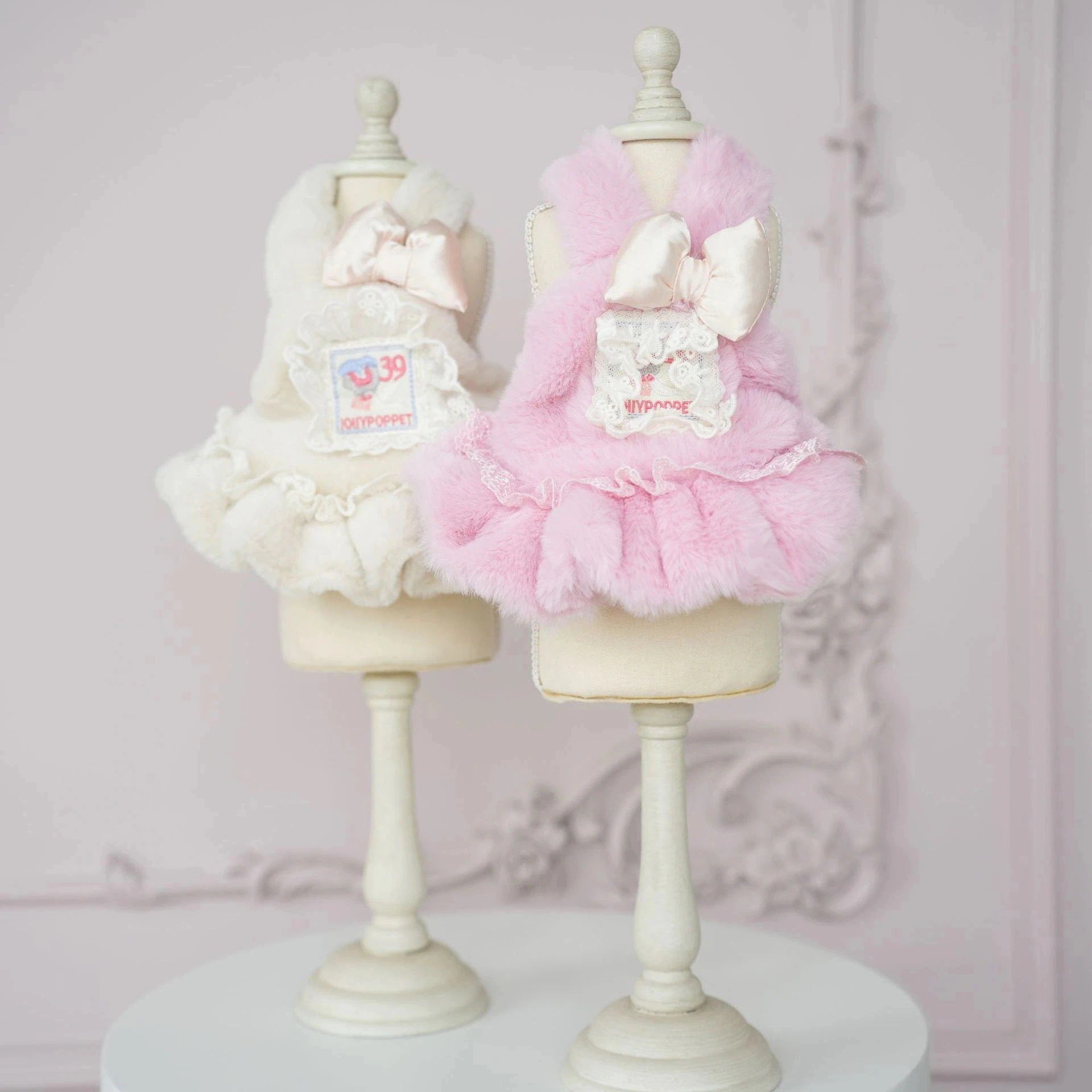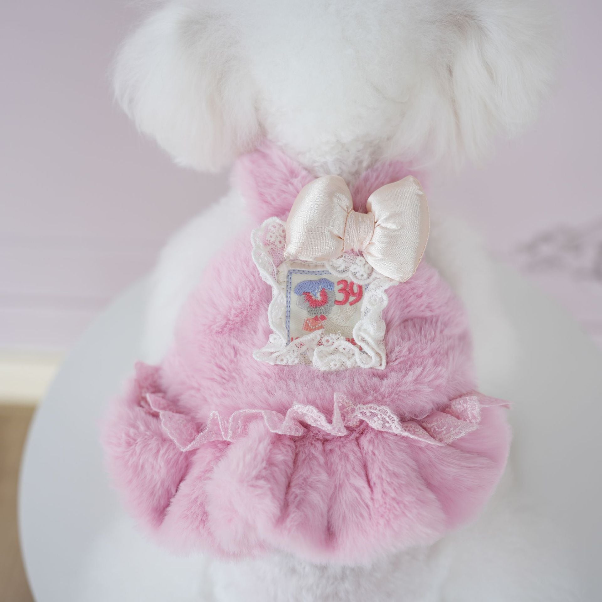 犬の服ペット犬秋冬モデル模造ウサギ毛ホルタードレス猫コールドコート クマテディコート