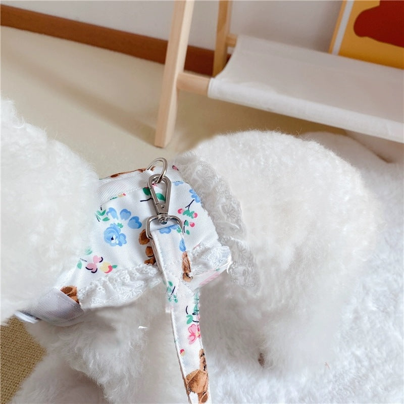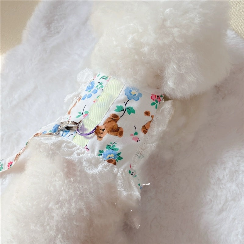 犬の牽引紐のベスト式のかわいいペットの服の夏の薄いタイプの王女の風は犬の牽引紐の猫の服を散歩します メガ割ワンピースパンツトートバッグ