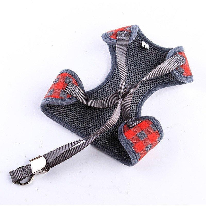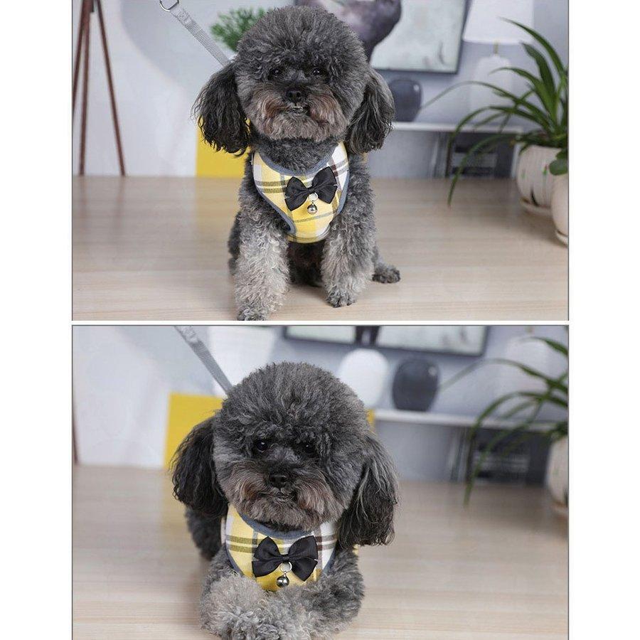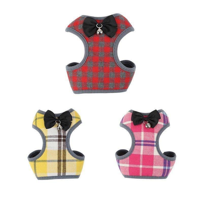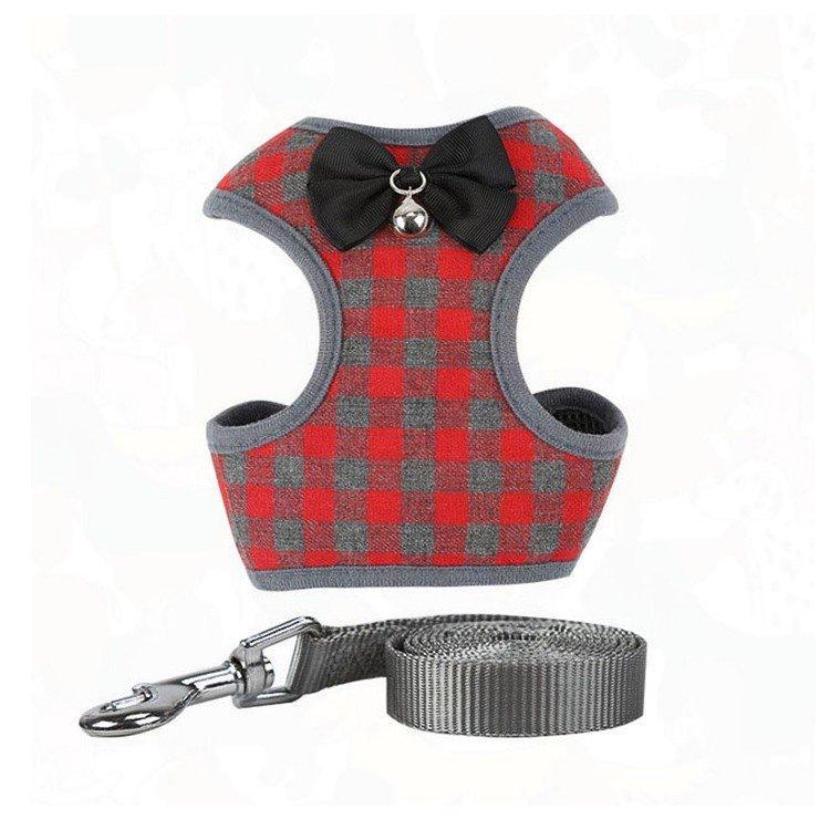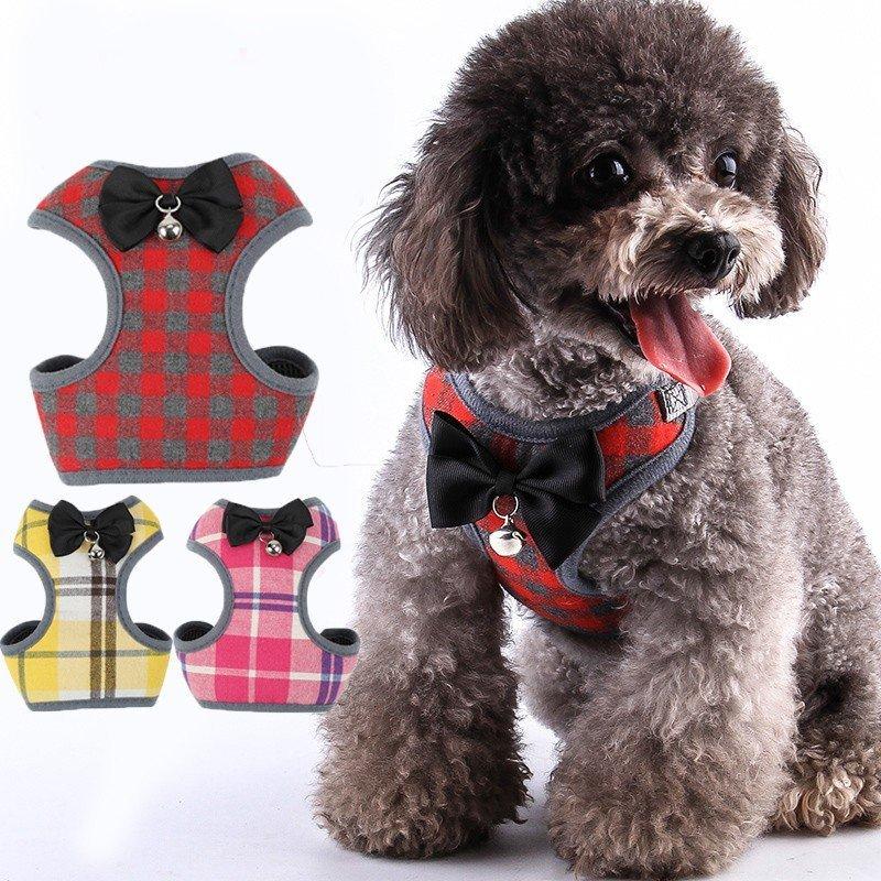 犬ハーネスハーネスリードセットリード小型犬用中型犬用犬用リボンサイズ調整可蝶ネクタイチェック柄首輪ワンちゃんペット