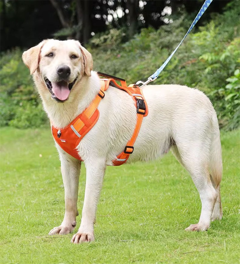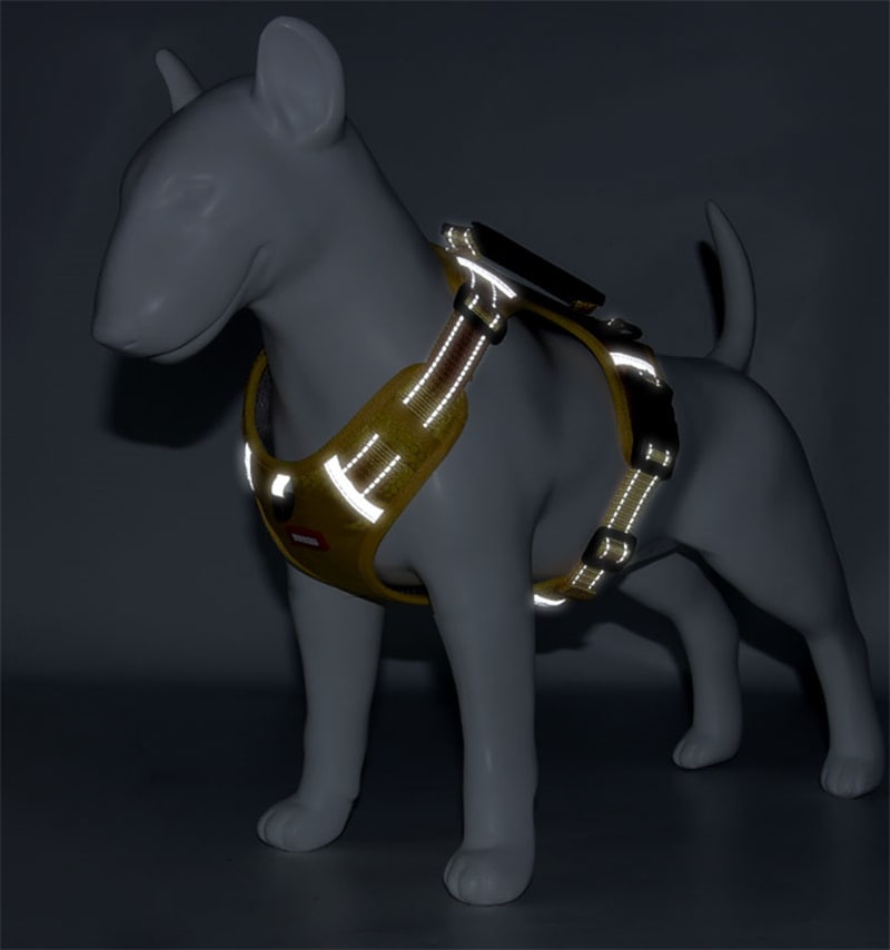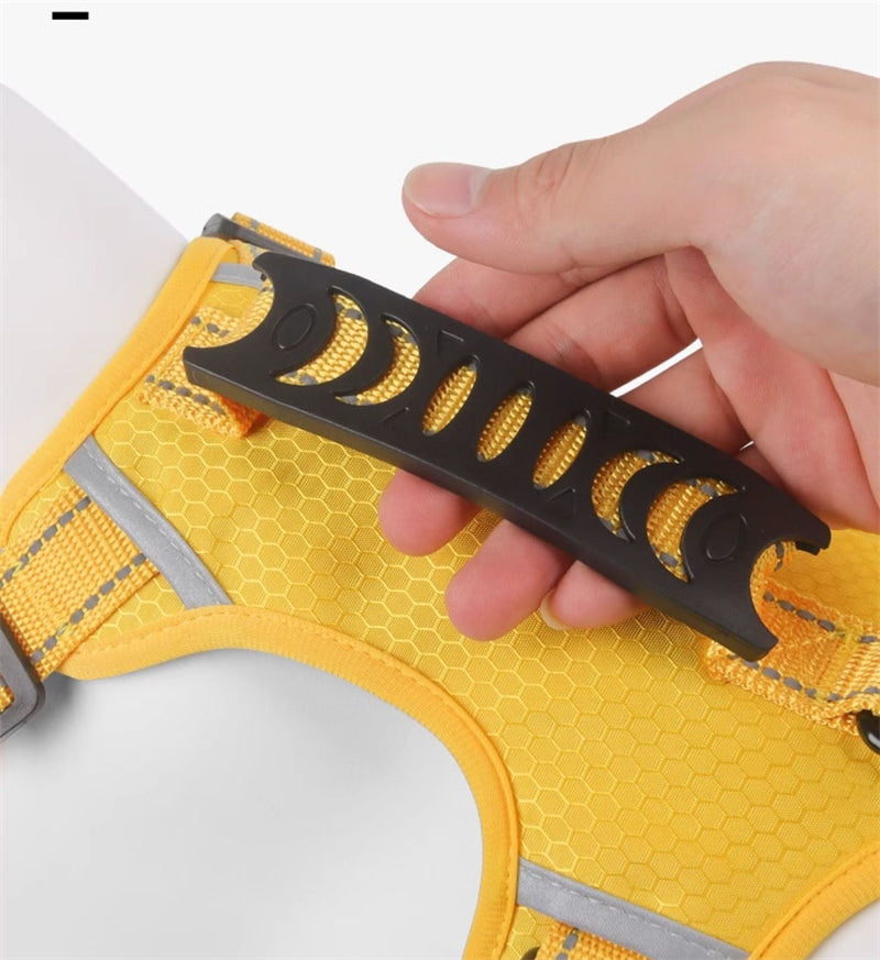 【高機能性】エルゴノミクスデザインで、引っ張り防止&愛犬への負担が少ない。呼吸器が弱い犬や老犬に適しています。 1、反射ステッカーと反射材で施されたステッチで夜のお散歩、事故のリスクを回避できます。 2、改良版PVCハンドルは従来のモデルより、安全性、利便性が大幅にアップします。愛犬の急な動きに制御しやすい、介護が必要な愛犬の場合は段差や階段のサポート時に役立ちます。 3、Dリングはアルミニウム合金製で耐衝撃性、軽量、耐腐食性と硬度があります。超大型犬の引きにも耐えます。