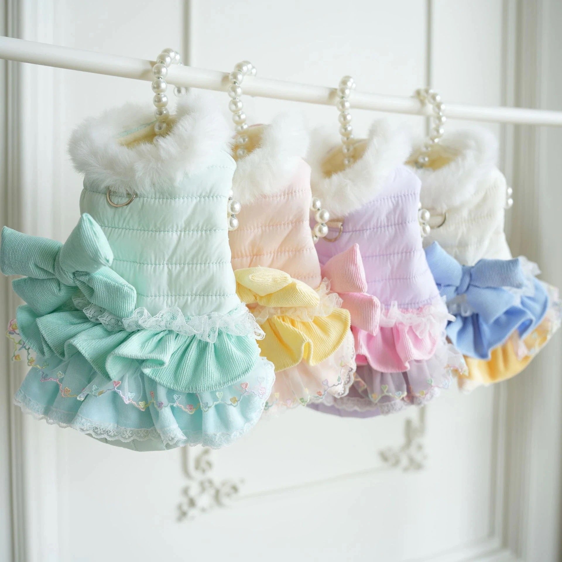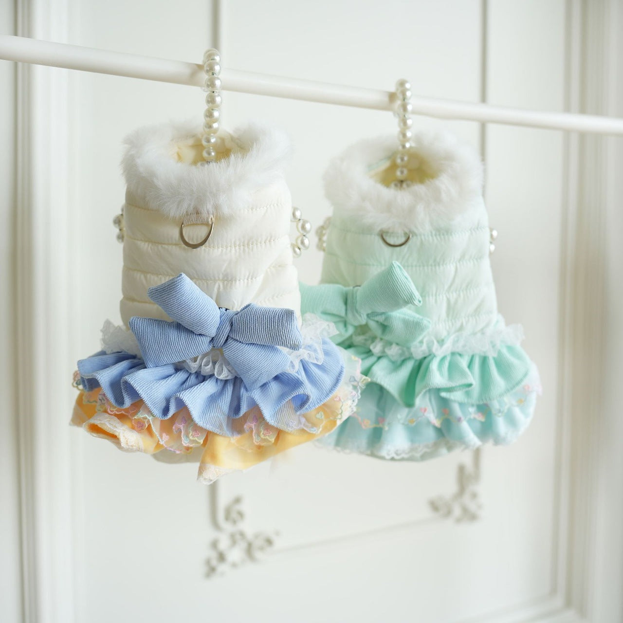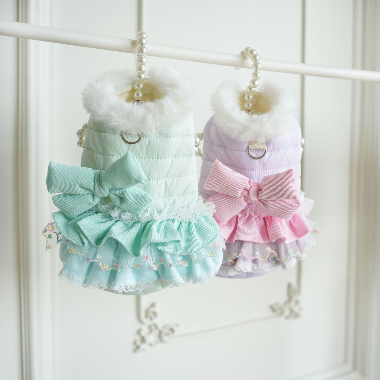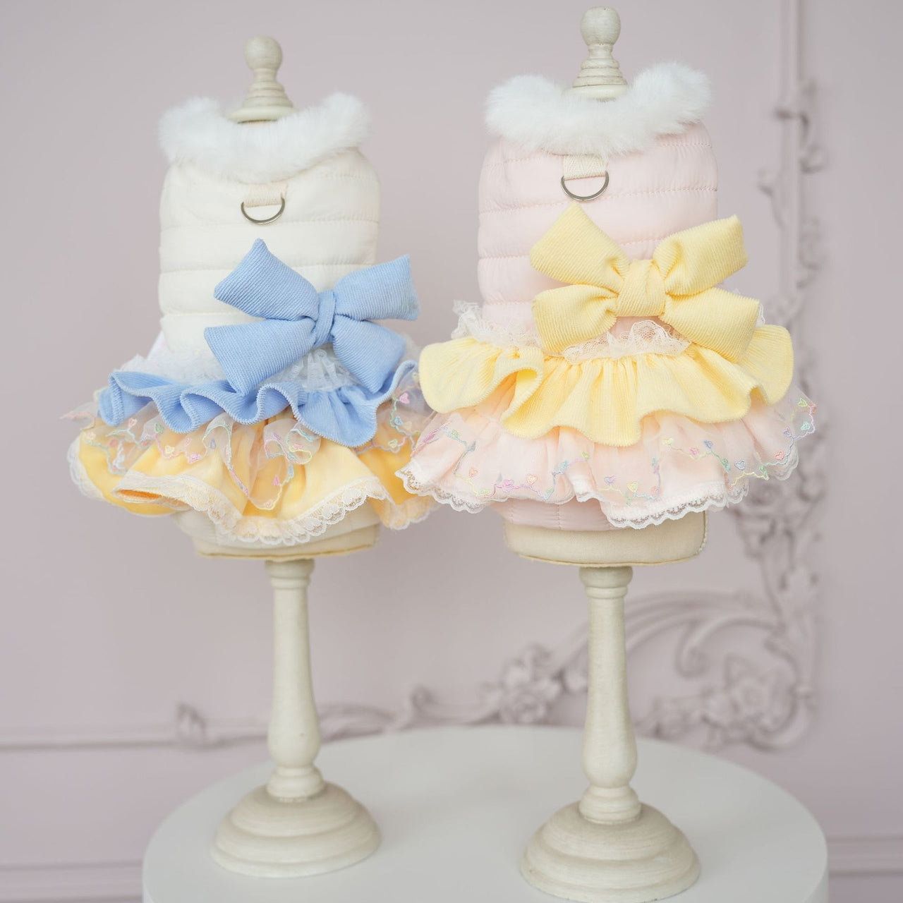 犬服ペット犬冬服横縞多層レース綿スカート防水コート小・中型犬二本足コート