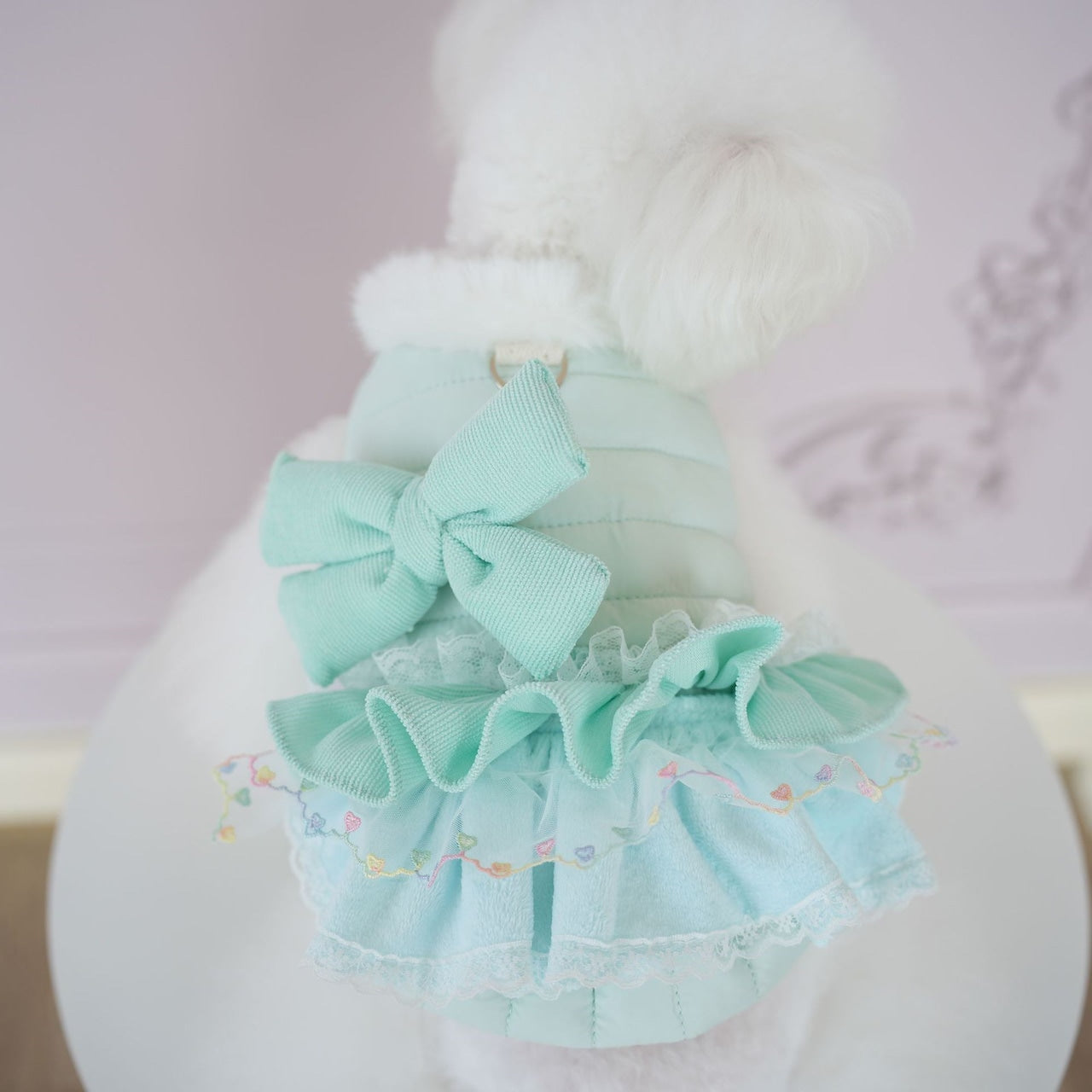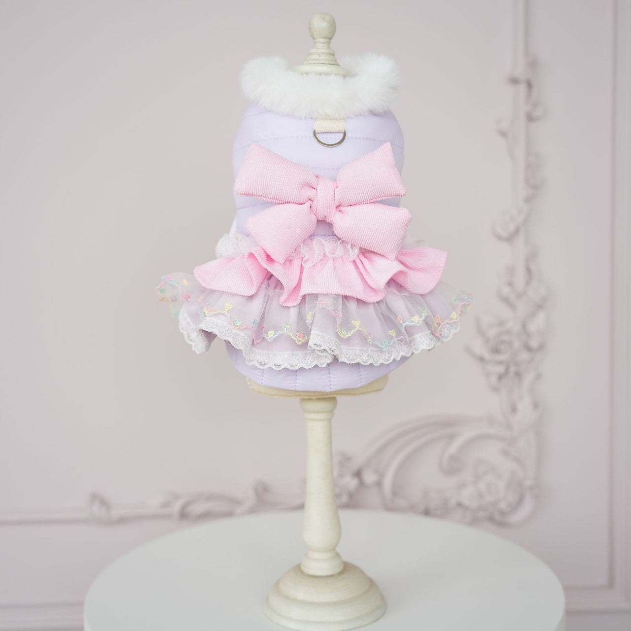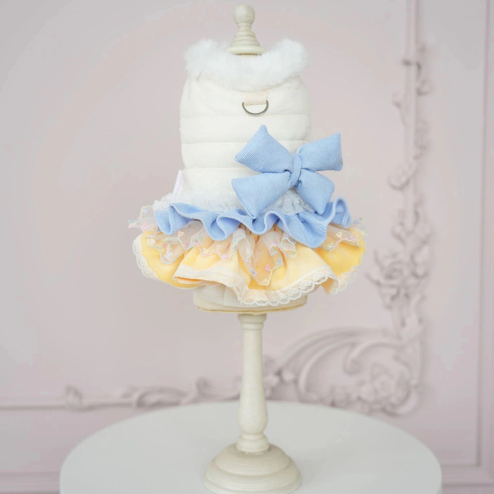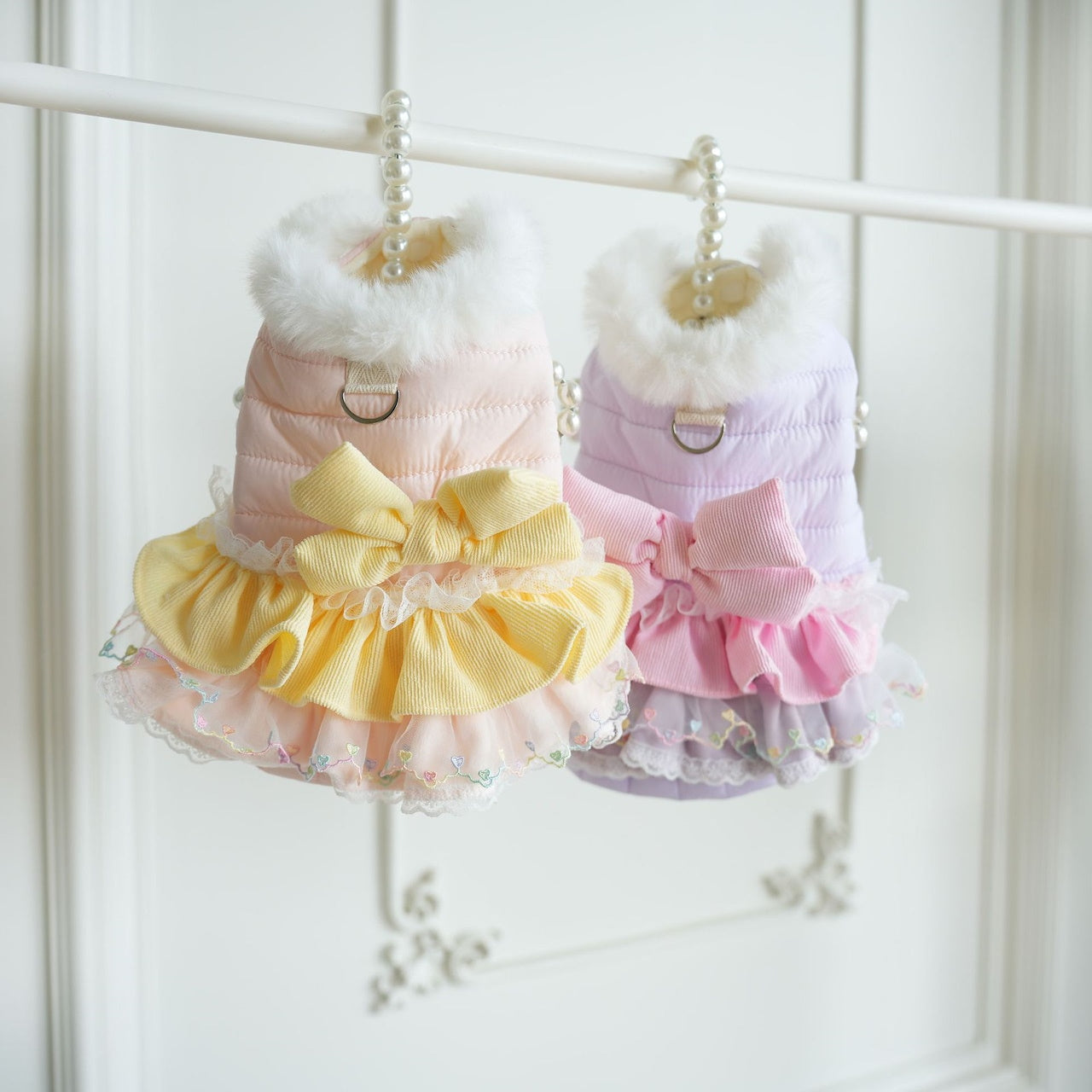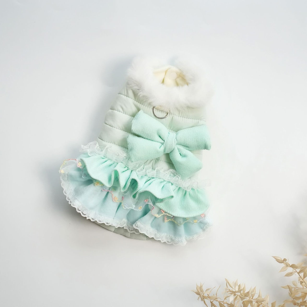 犬服ペット犬冬服横縞多層レース綿スカート防水コート小・中型犬二本足コート