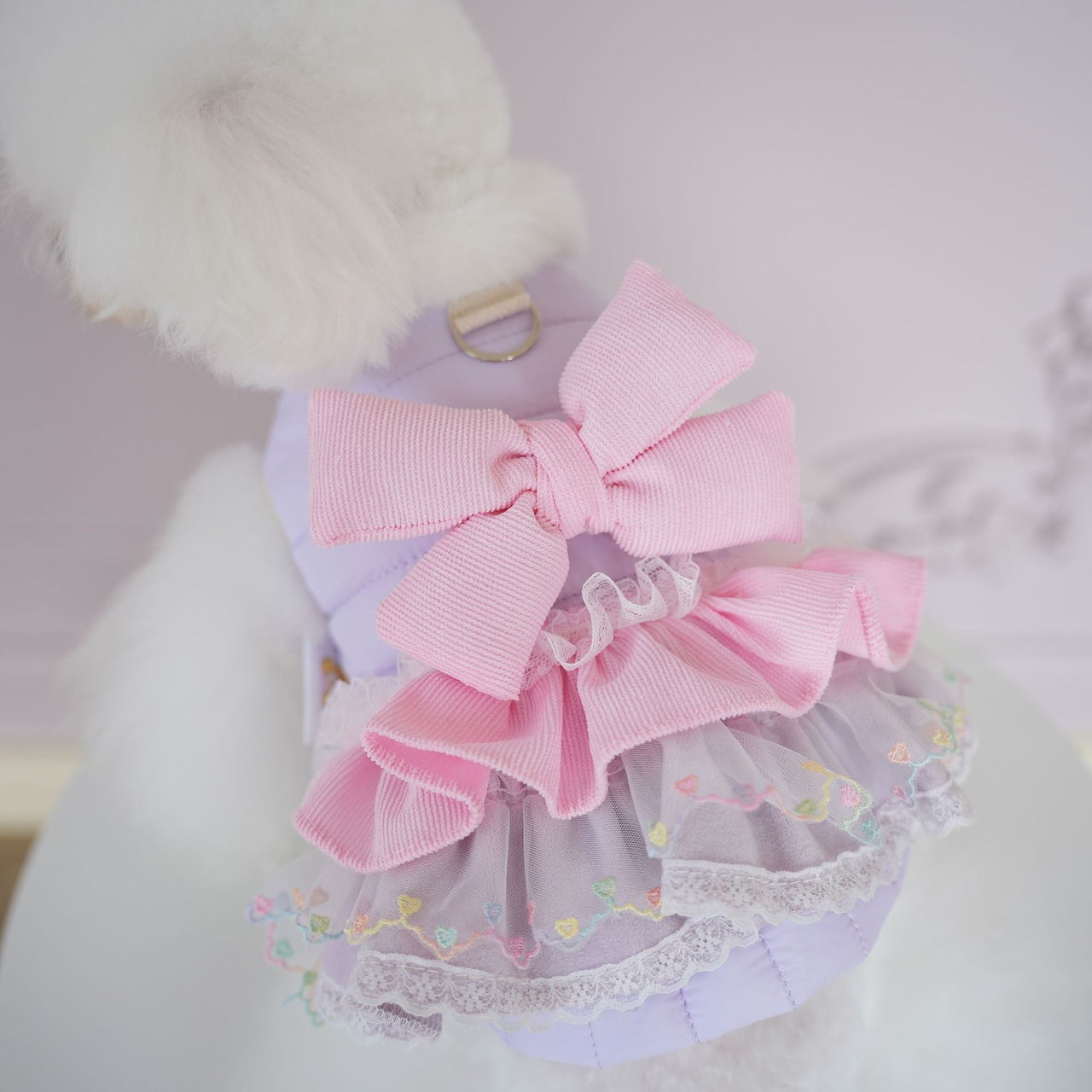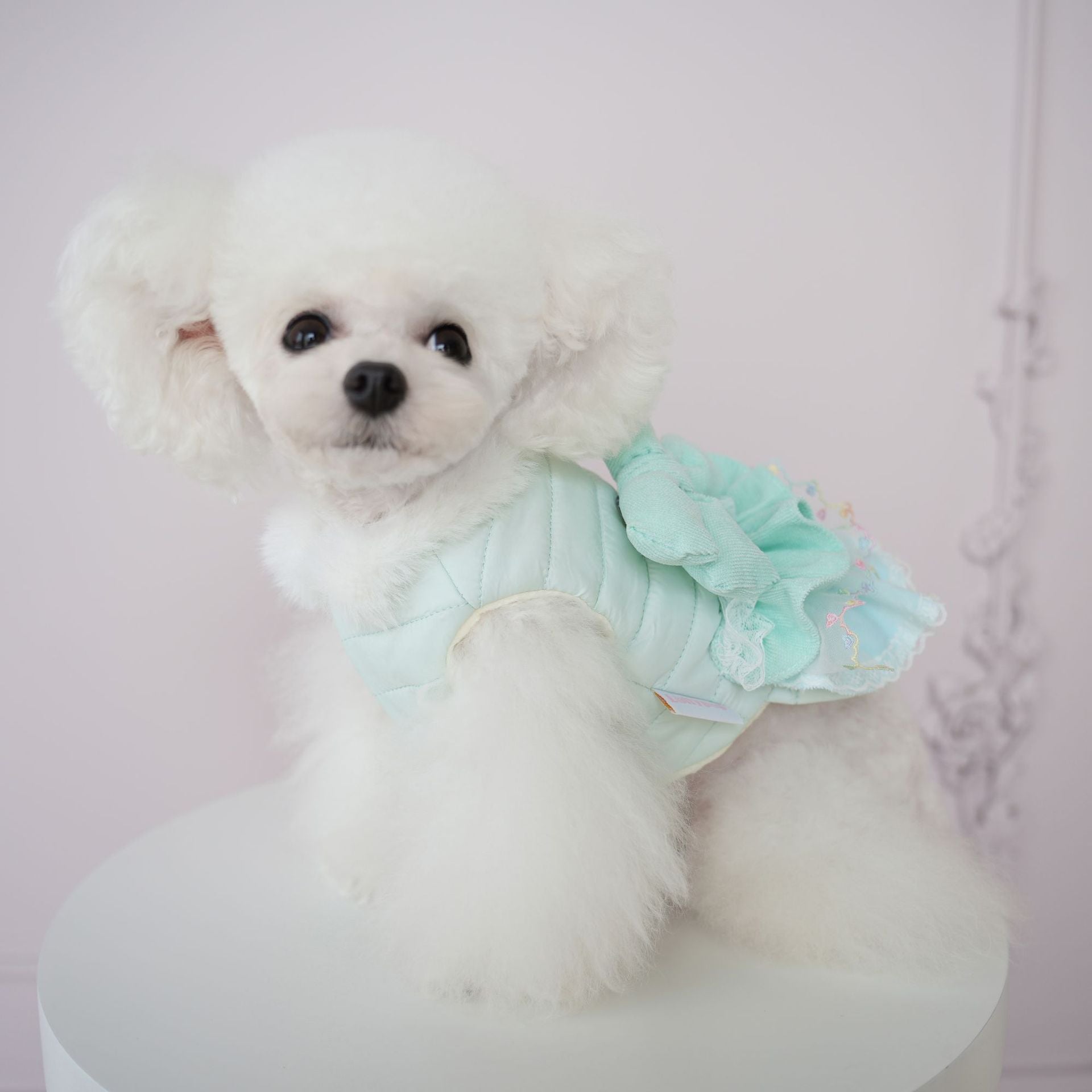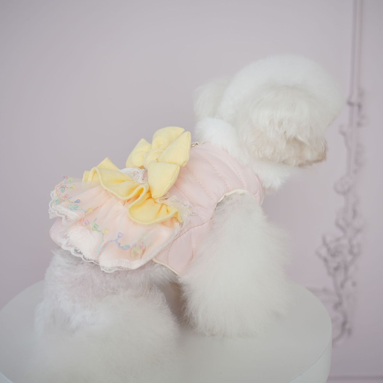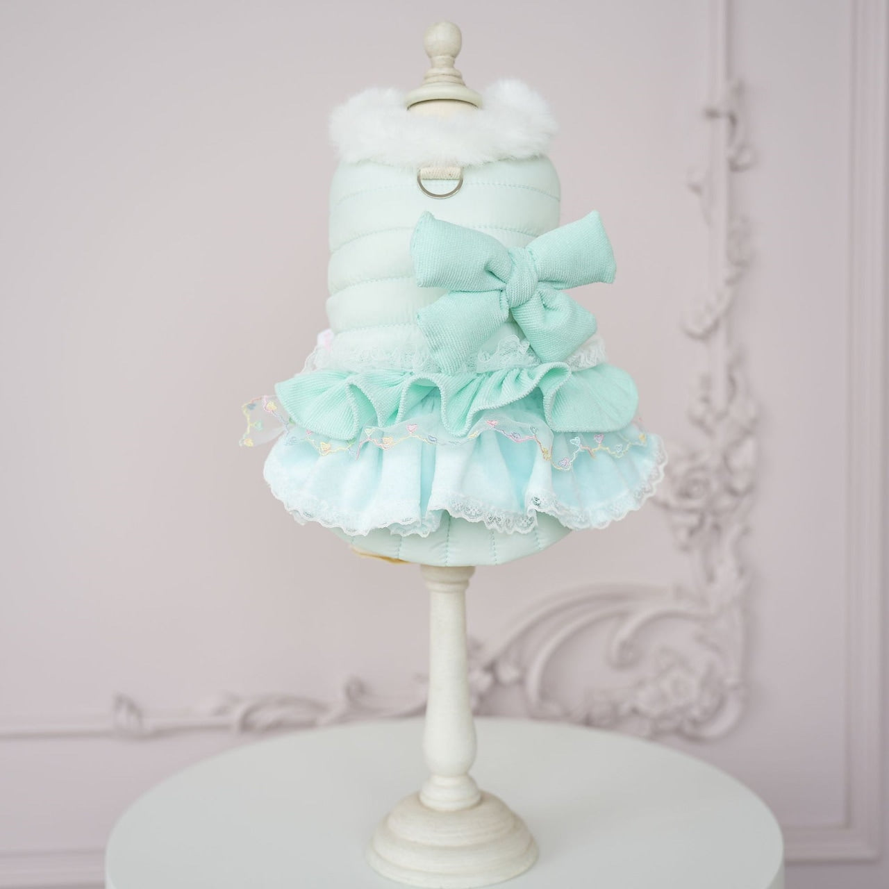 犬服ペット犬冬服横縞多層レース綿スカート防水コート小・中型犬二本足コート