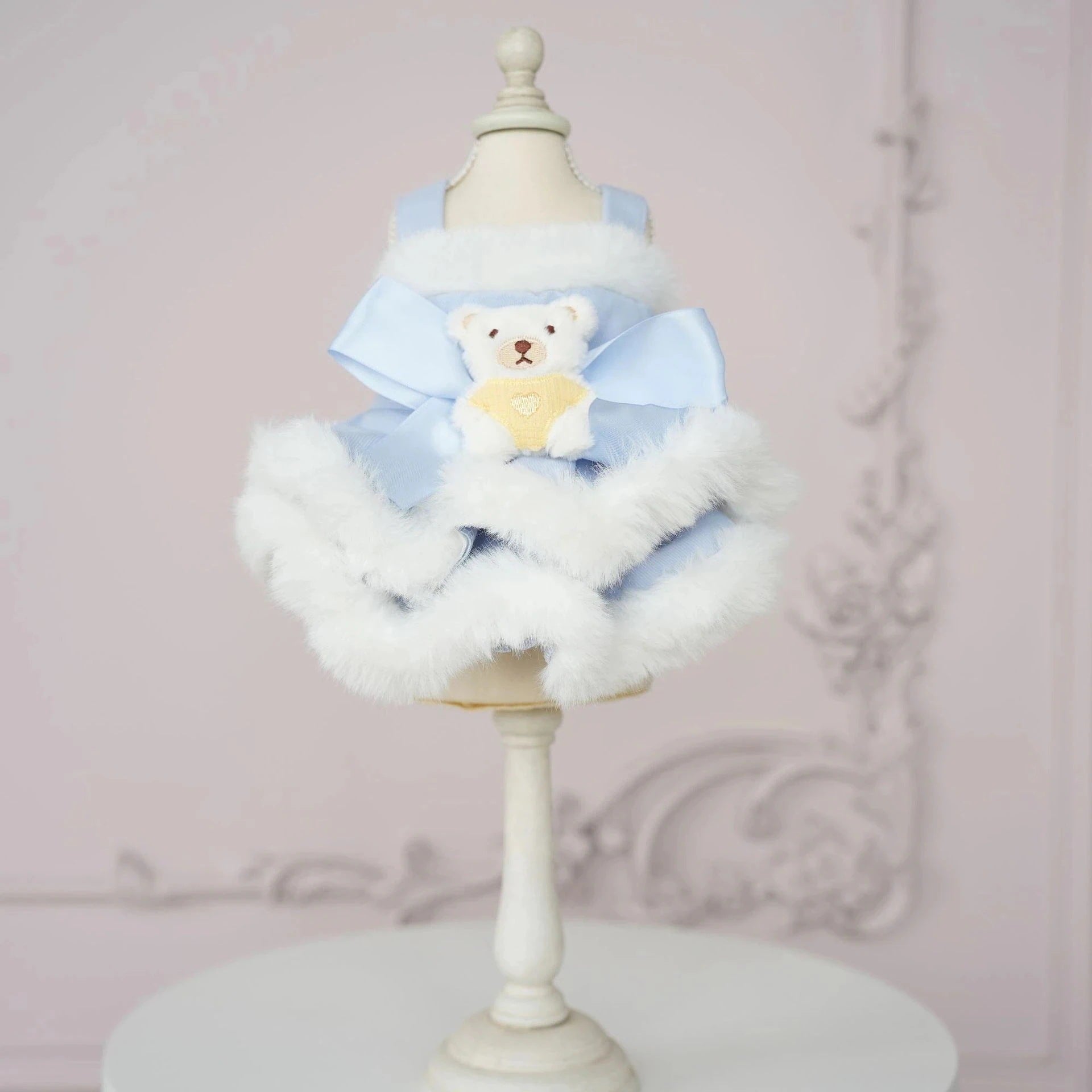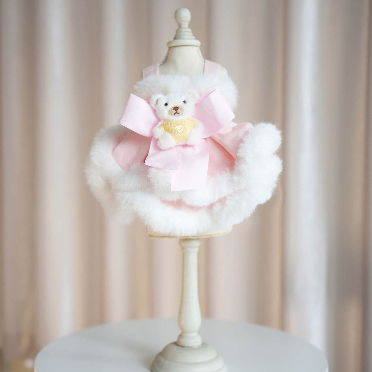 犬服ペット犬服秋冬新作ファーボーダースリングベアドレステディビションコーギー服