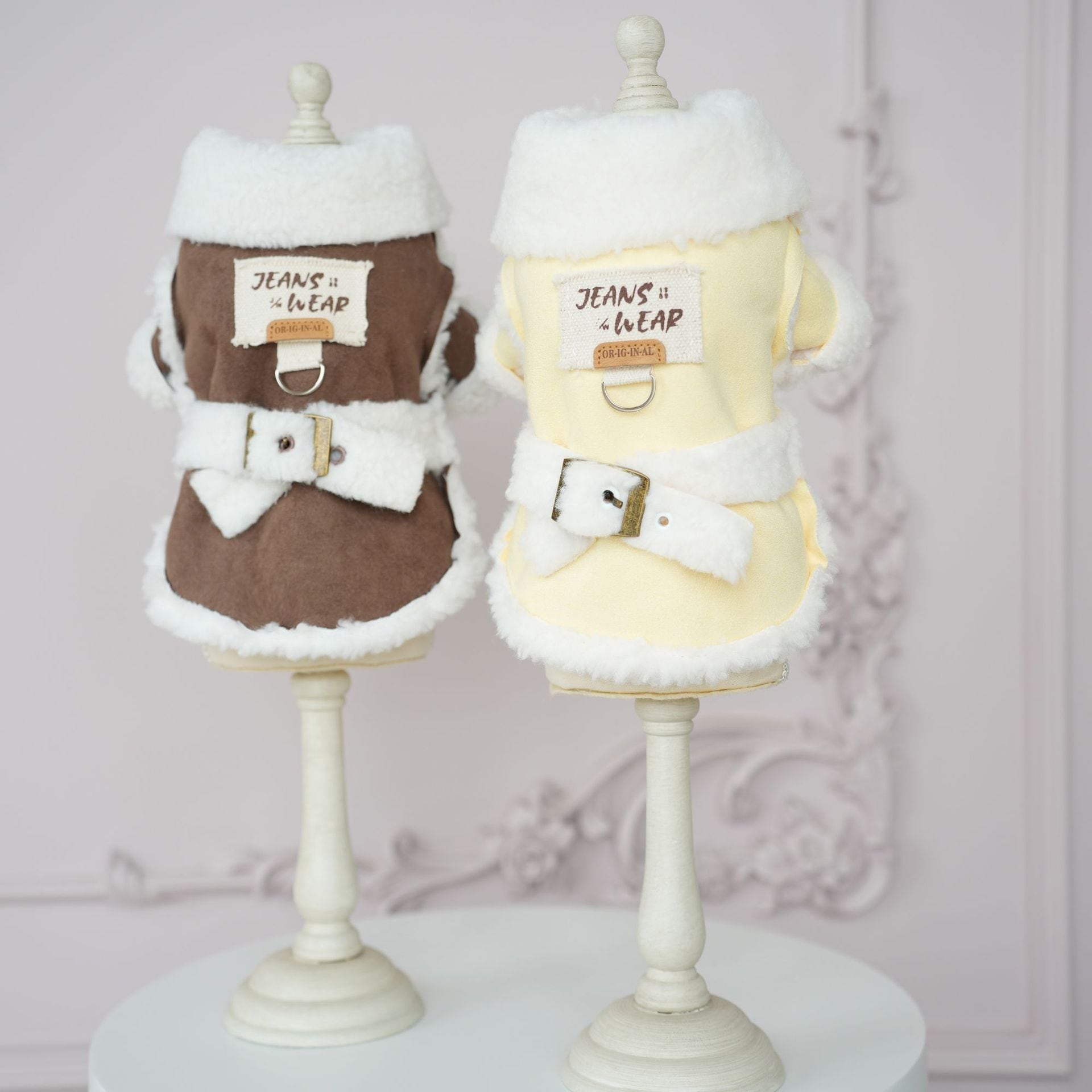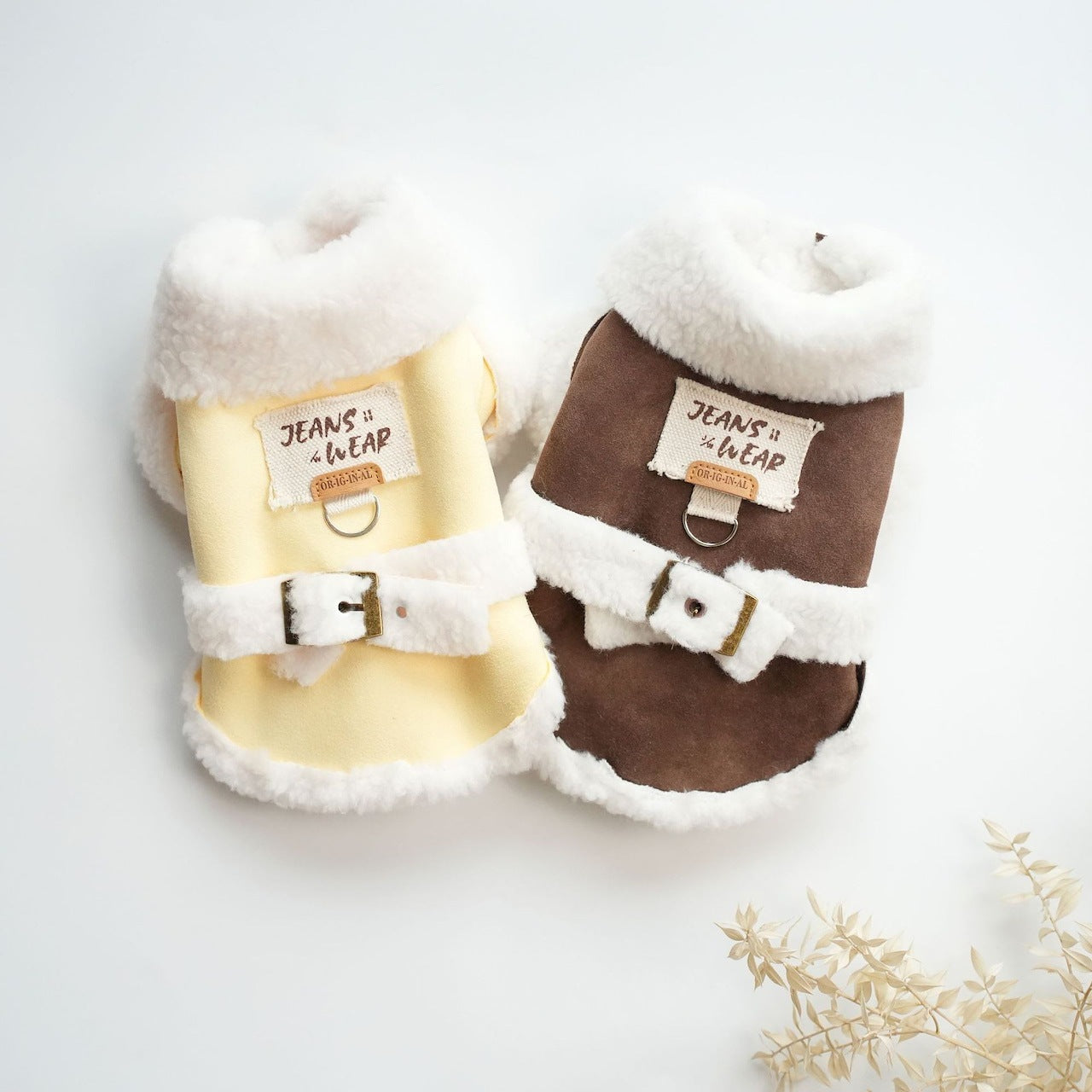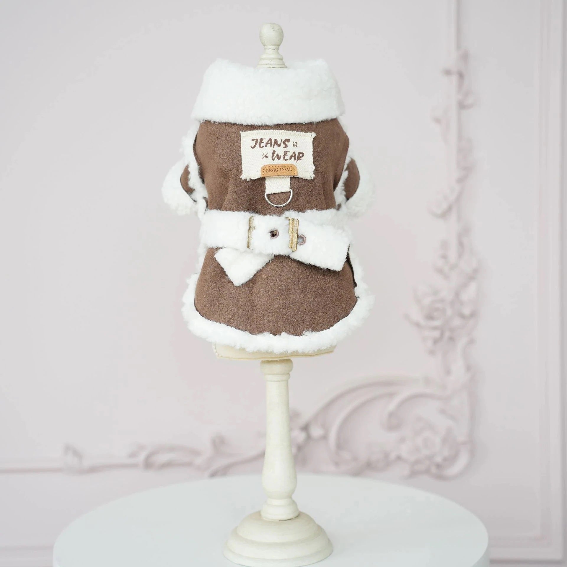 犬服新しいペットの服イミテーションスエードワンピースコットンコートソフト快適な冬のコートプードル二本足の服