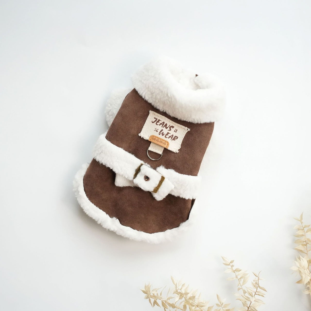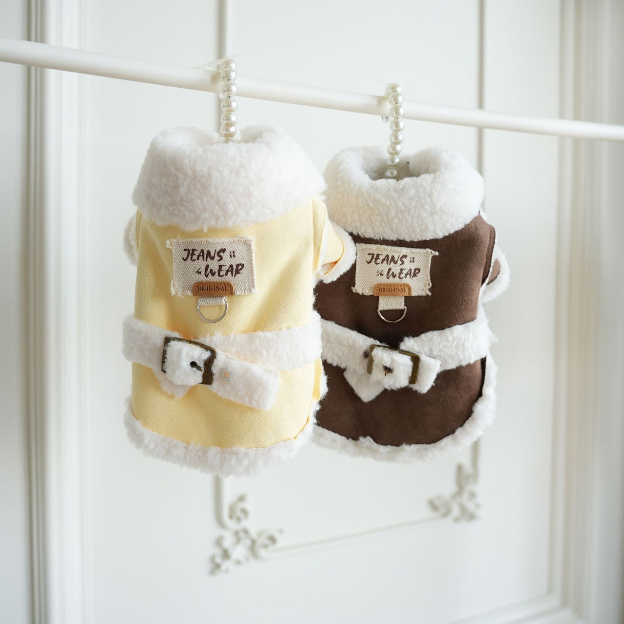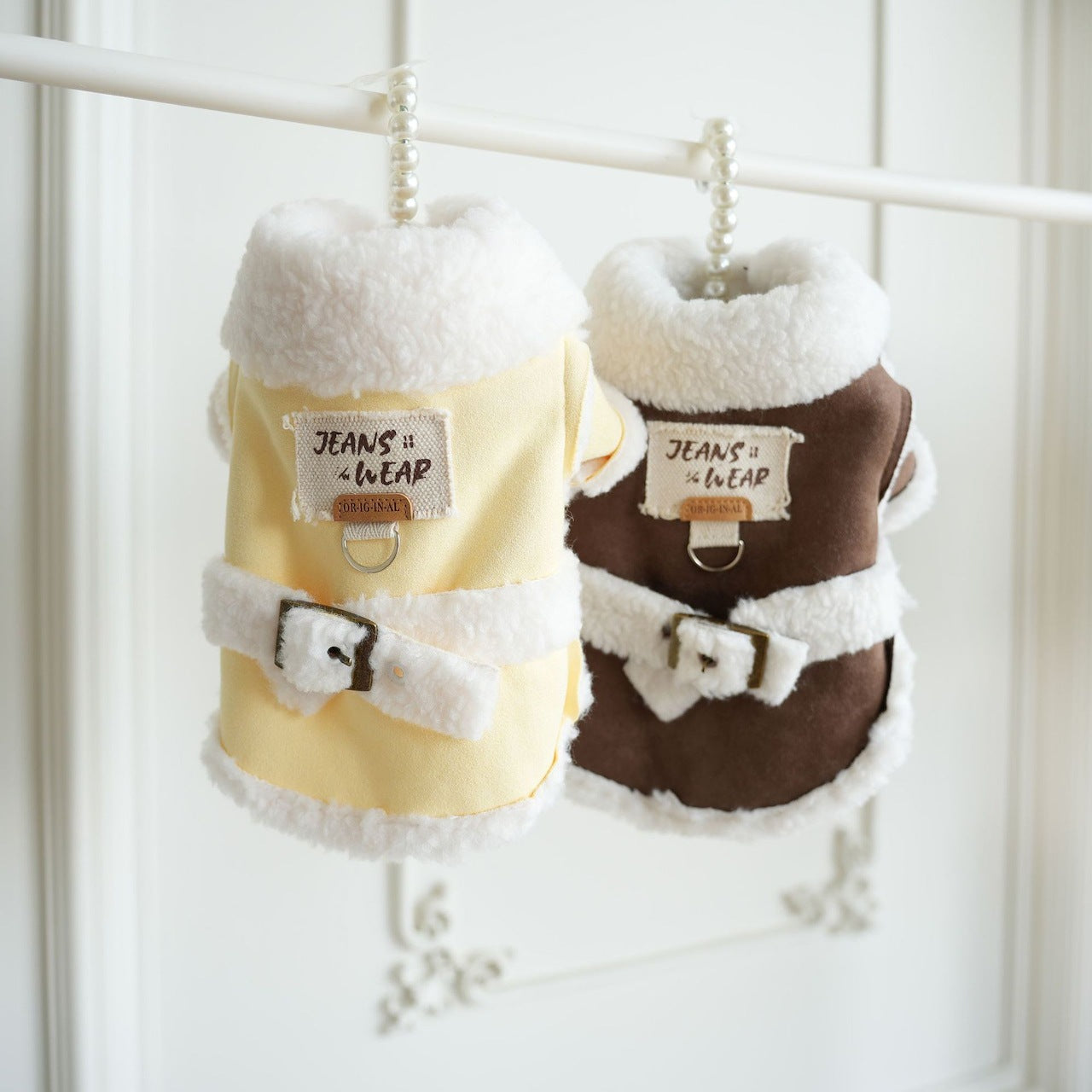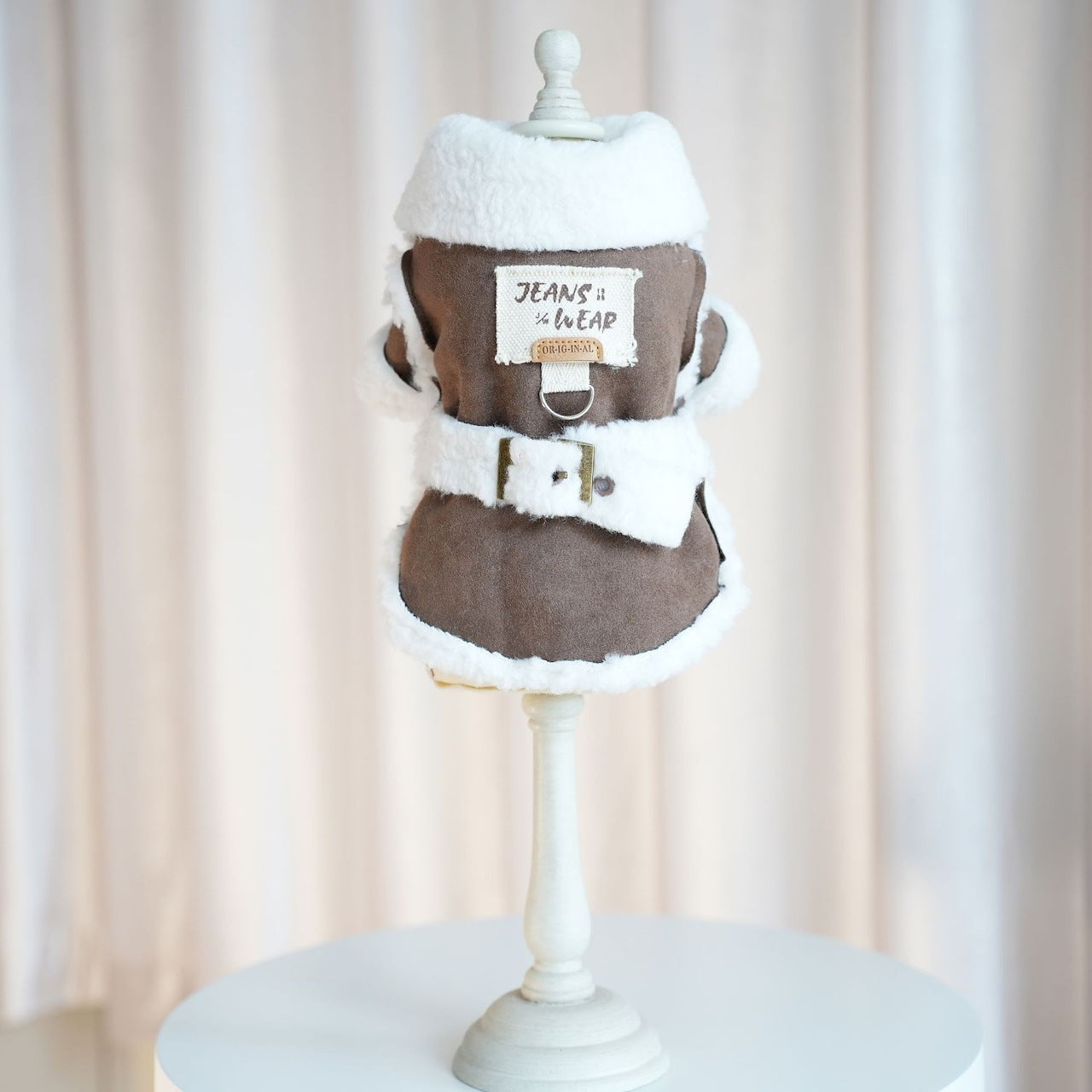 犬服新しいペットの服イミテーションスエードワンピースコットンコートソフト快適な冬のコートプードル二本足の服
