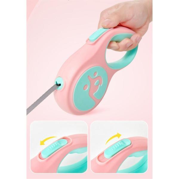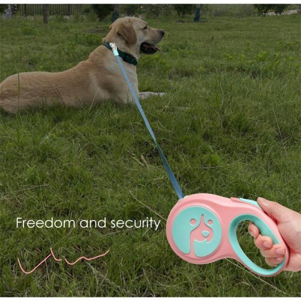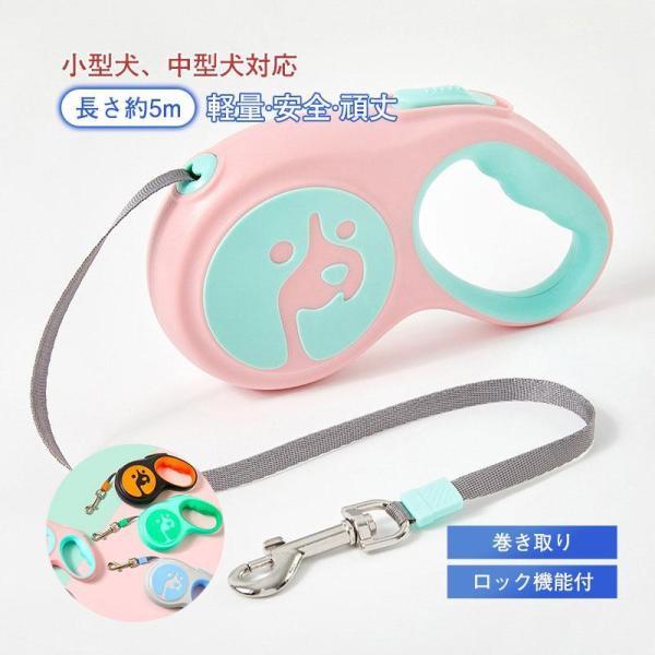 犬用リード リード ワンタッチ ロープ 巻き取り 5m フック ロック機能付 夜間 安心 安全 中型犬 軽い 丈夫 散歩 小型犬 長い 伸縮 軽量