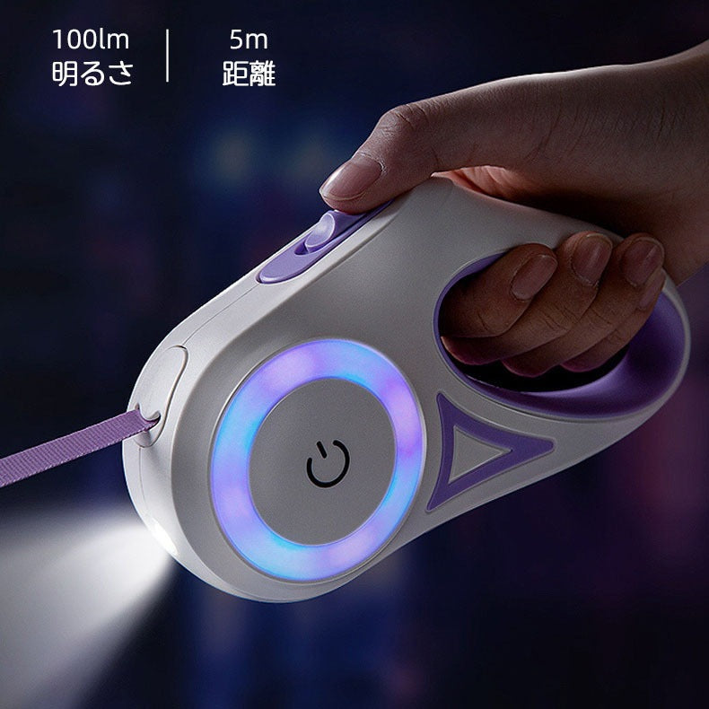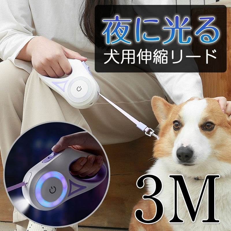 犬用リード 伸縮 犬 リード 光る 3m ワンタッチ伸縮 夜に光る 散歩 小型犬 中型犬 軽量 簡単 イヌ いぬ