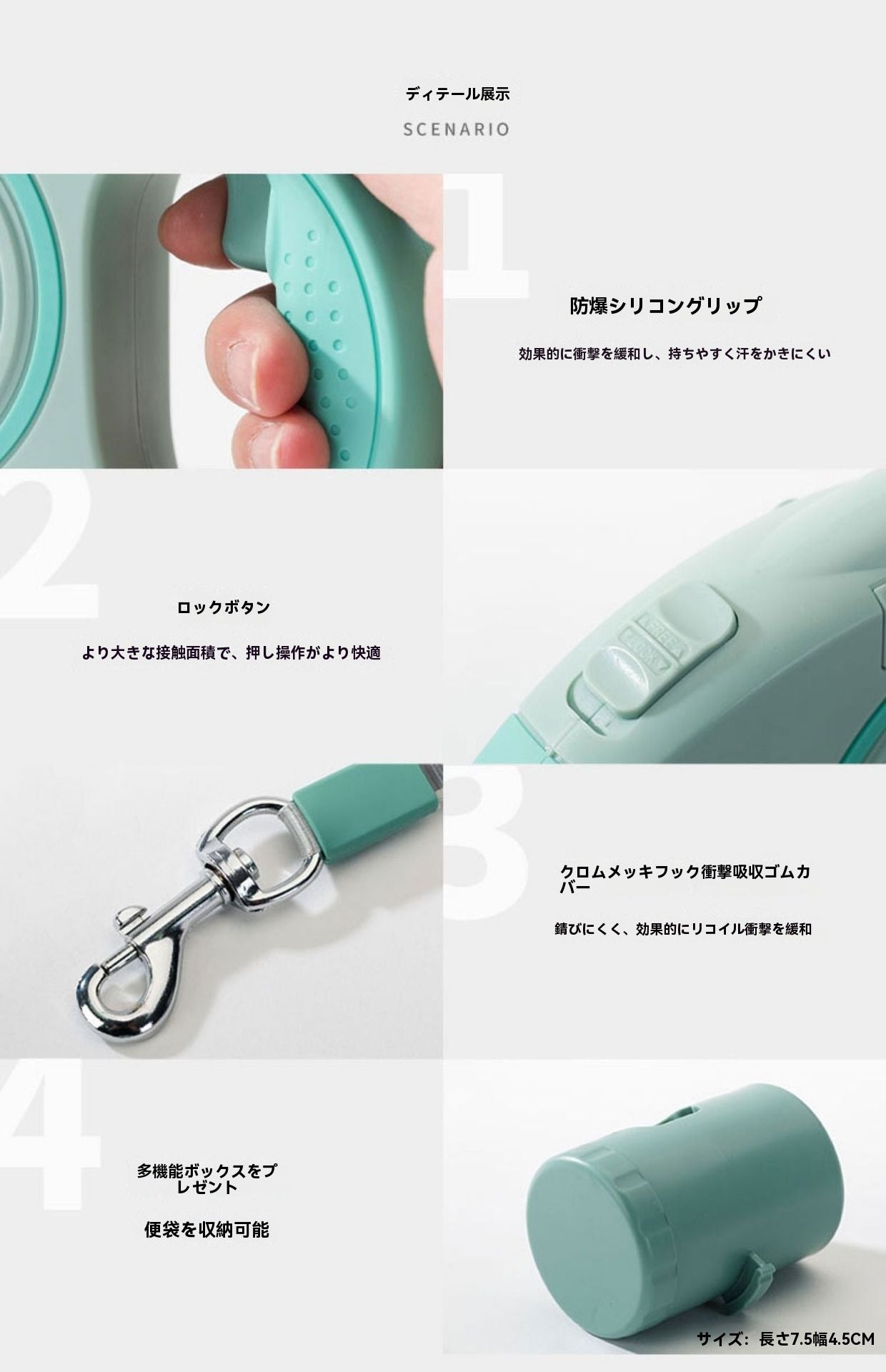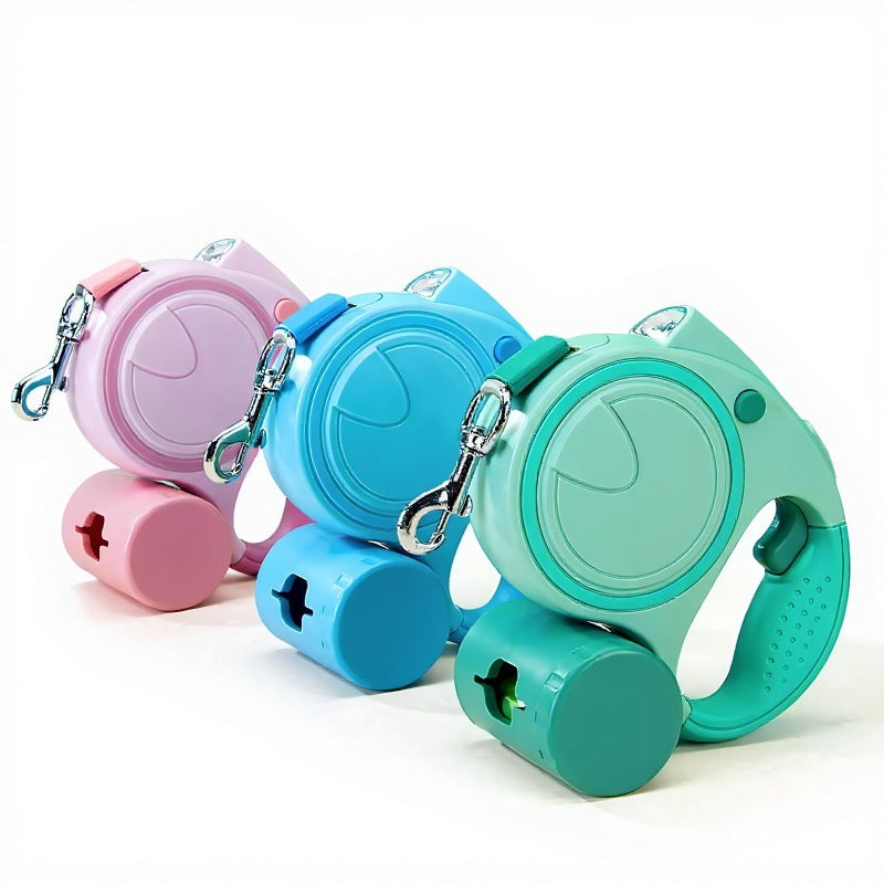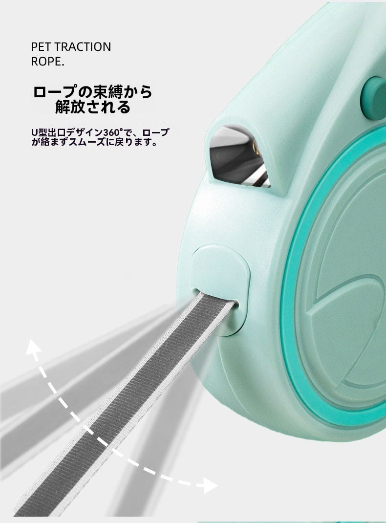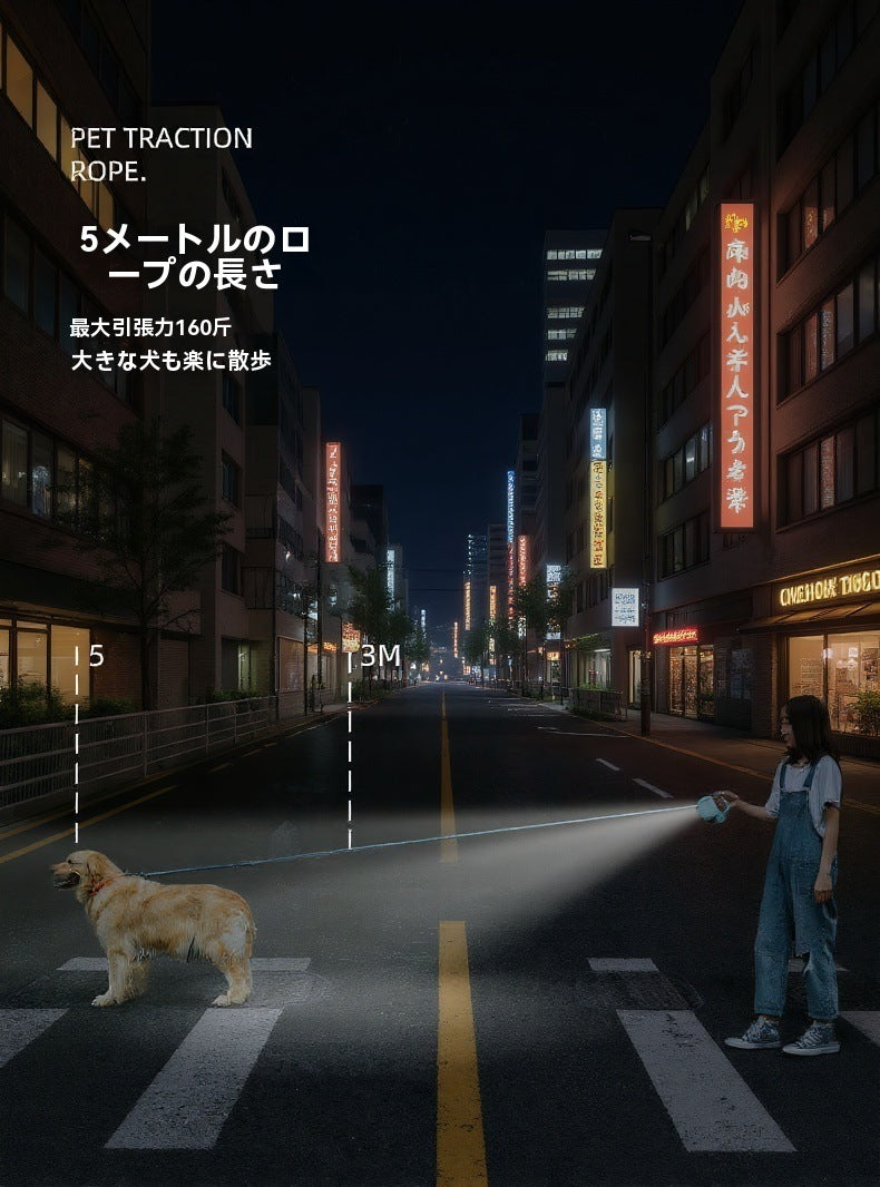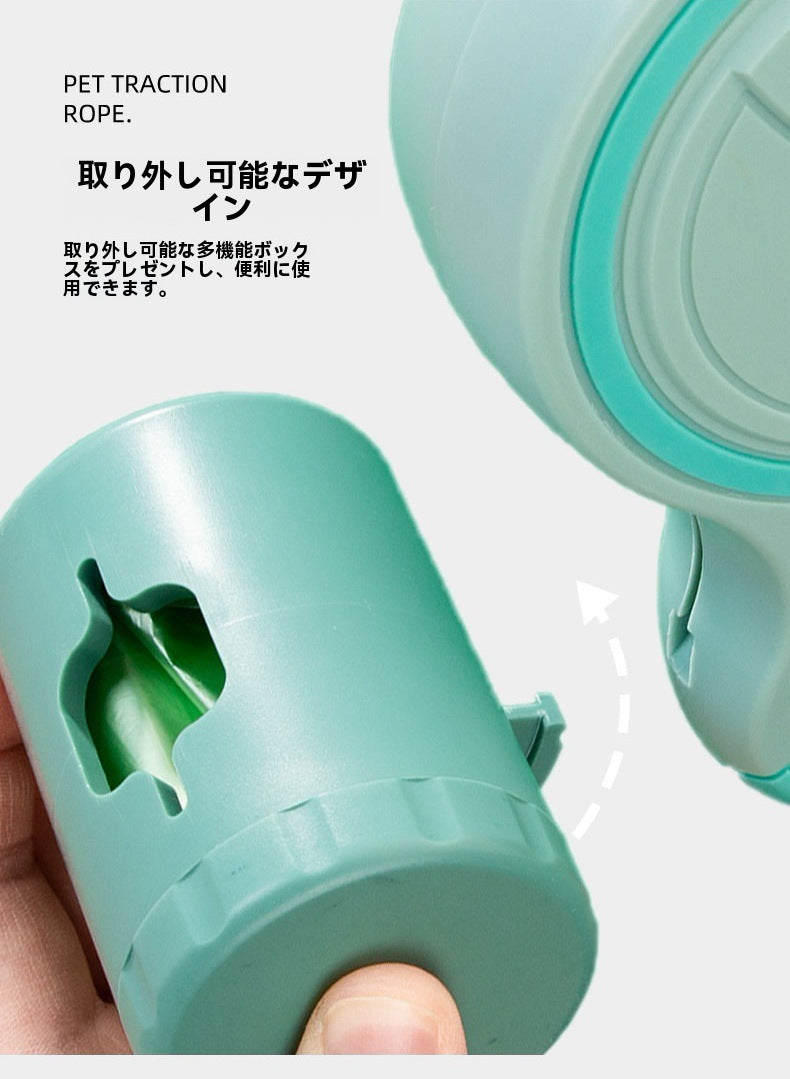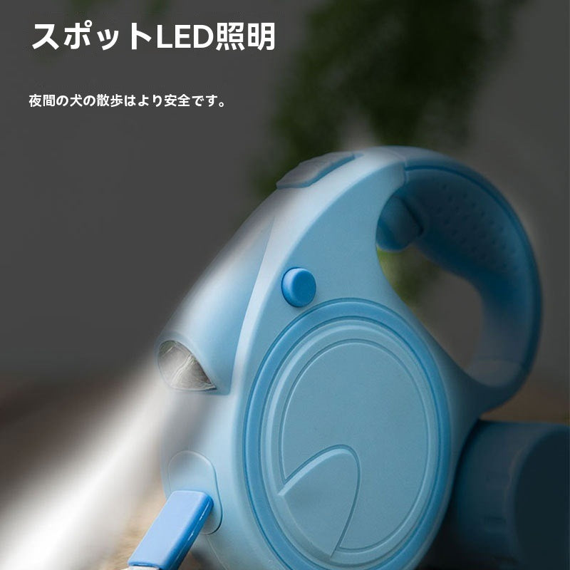 犬用多機能リード 即時停止機能 遠隔ライト付き 反転防止 巻き取り式収納ボックス