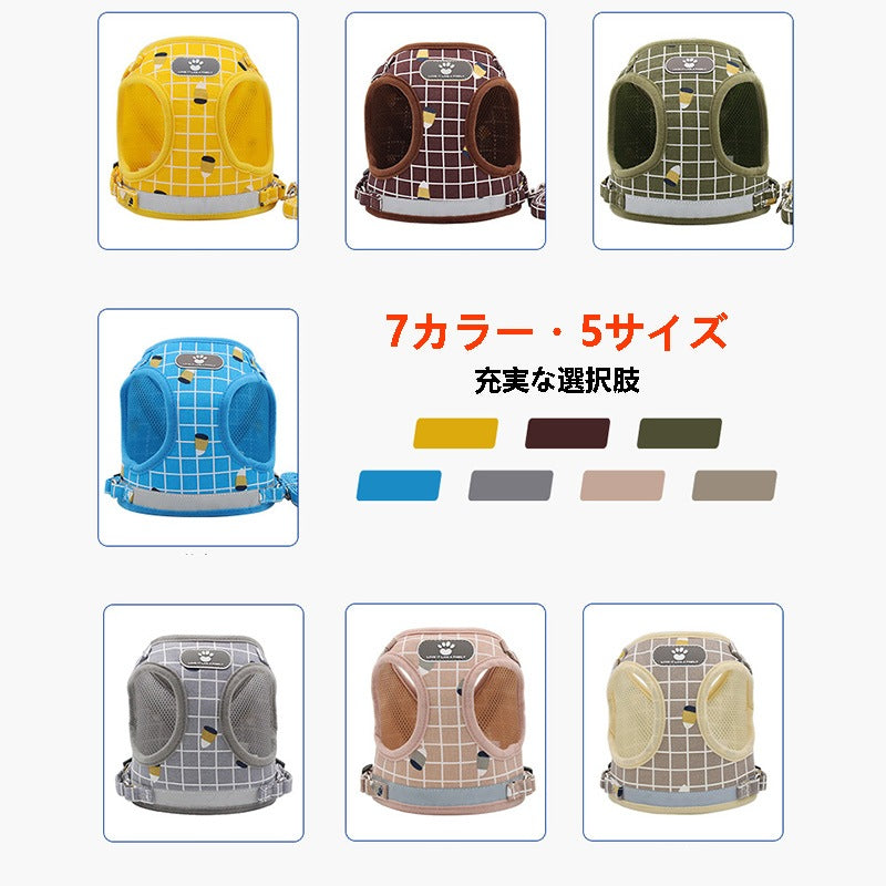 犬用 ハーネス リードセット 中型犬小型犬 脱げない 着せやすい おしゃれな犬ファッション ペット用品かわいい犬ベルト 7カラー選べる