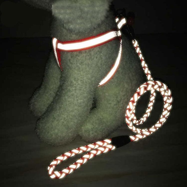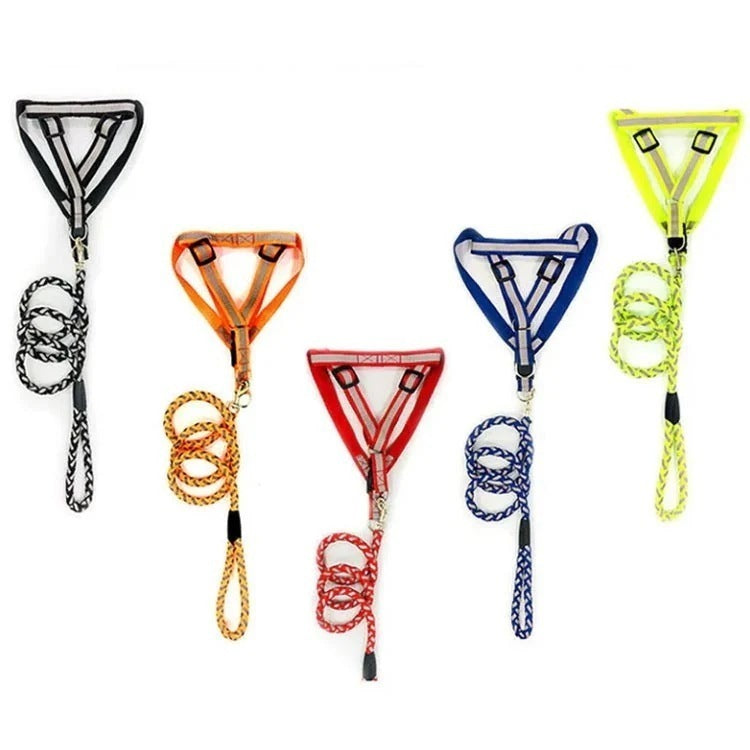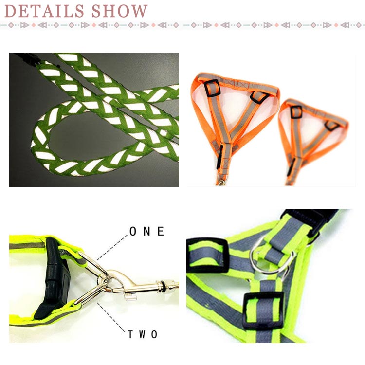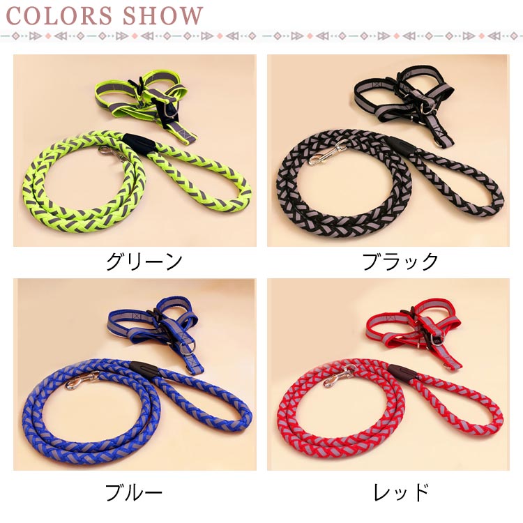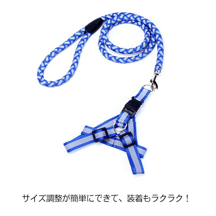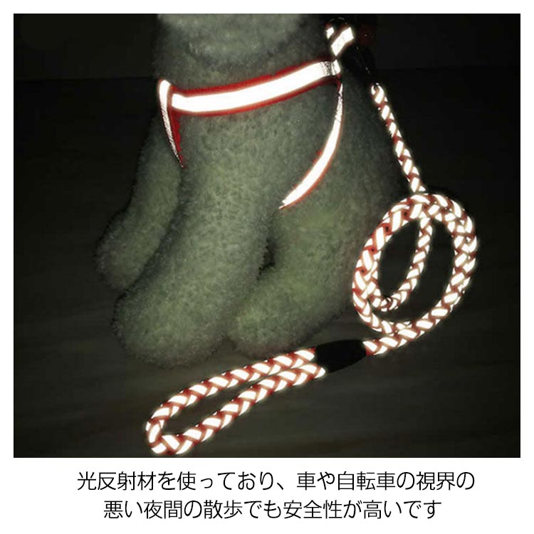 犬用 小型犬 中型犬 ハーネス リード付き 胴輪 夜間反射 散歩 お出かけ 安全 事故防止 光反射材料 長さ調節可能 軽量 引っ張り防止 犬用品 ペットグッズ チワワ プードル