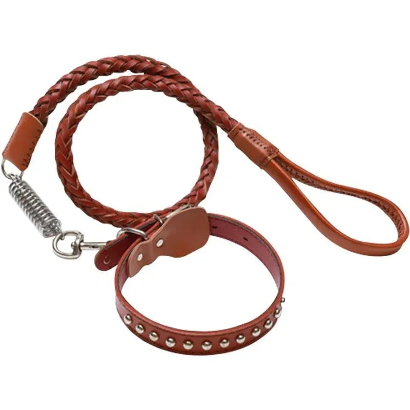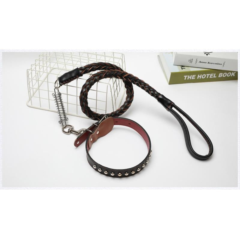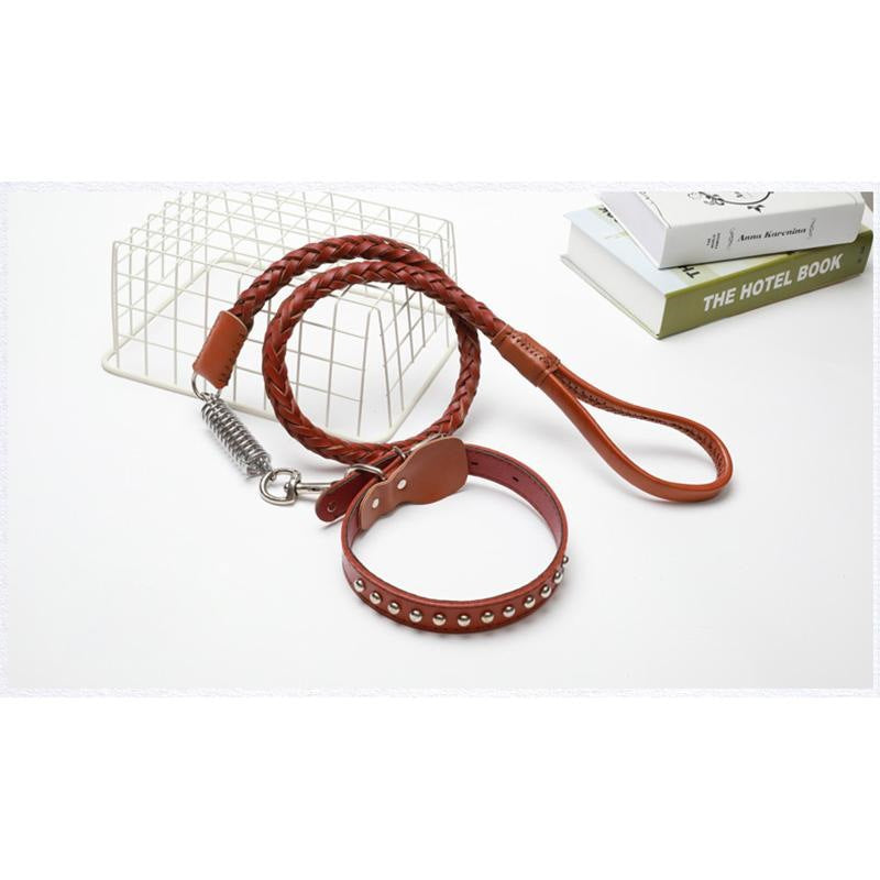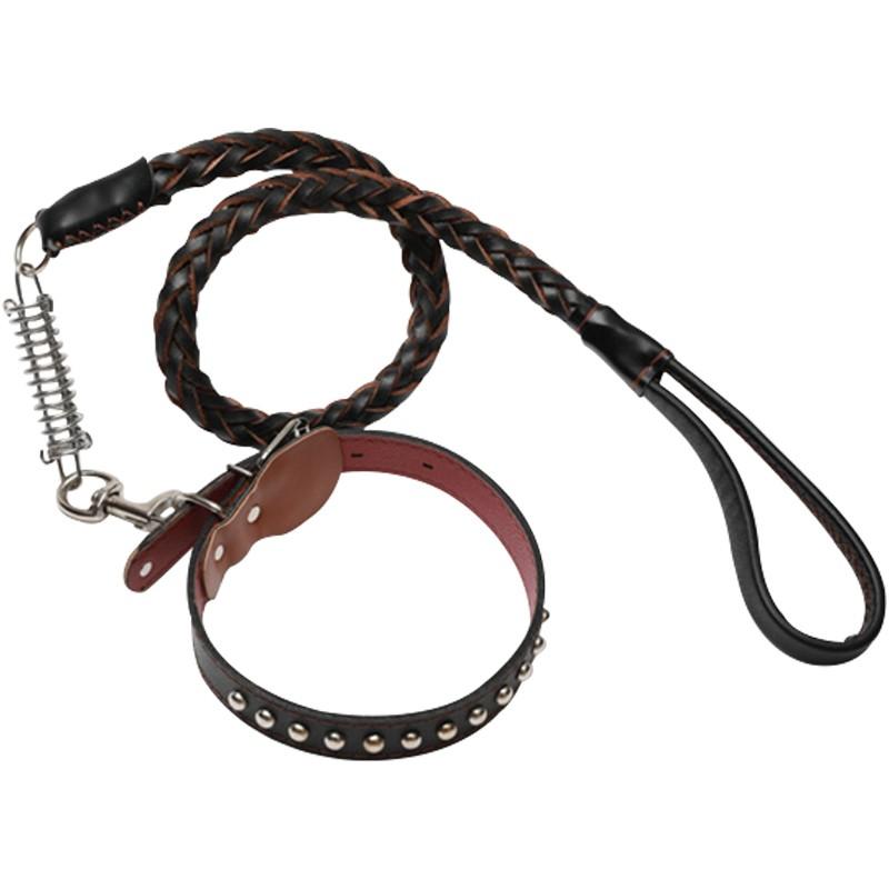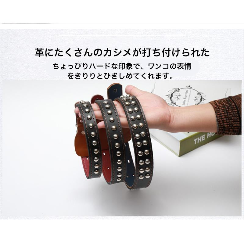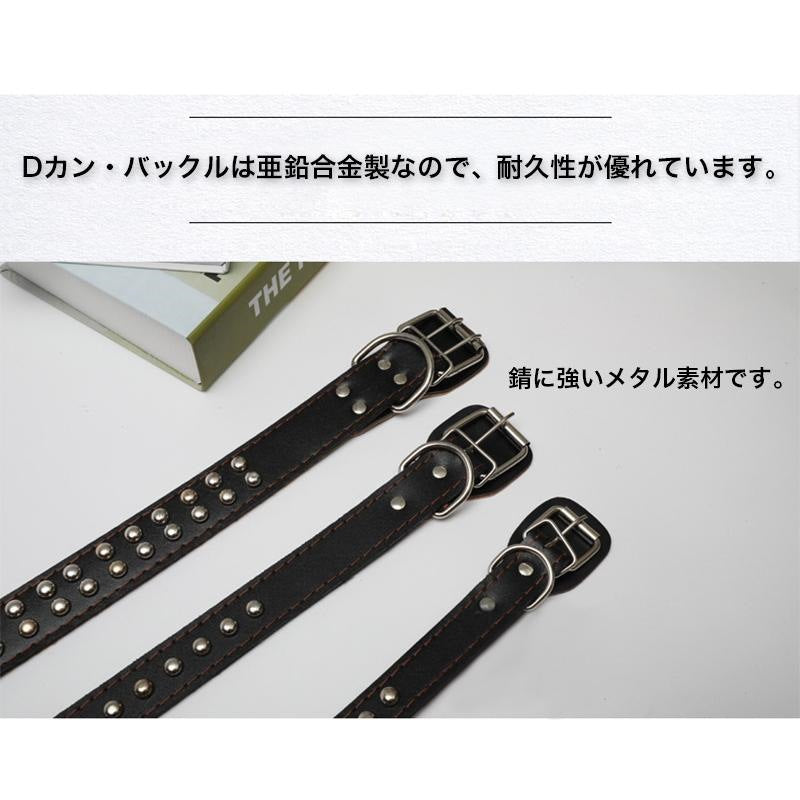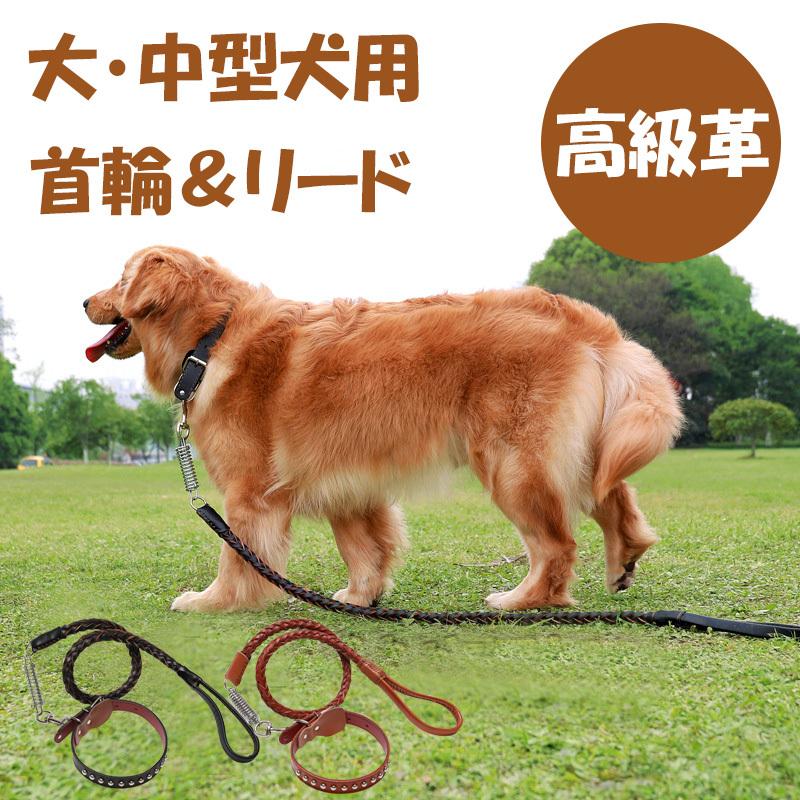 犬用 首輪 リード 革 レザー 大型犬 中型犬 メタル スプリング付き 錆に強い 衝撃緩和 丈夫 頑丈 ちょっぴり かっこいい