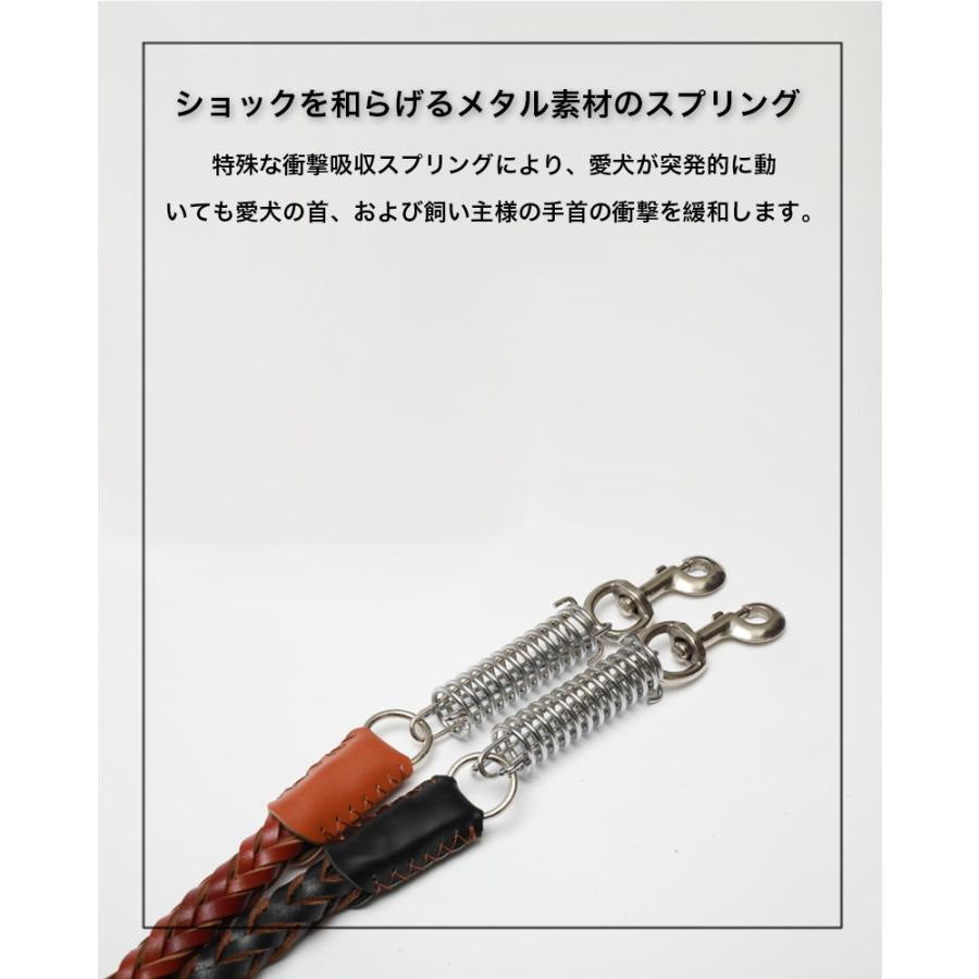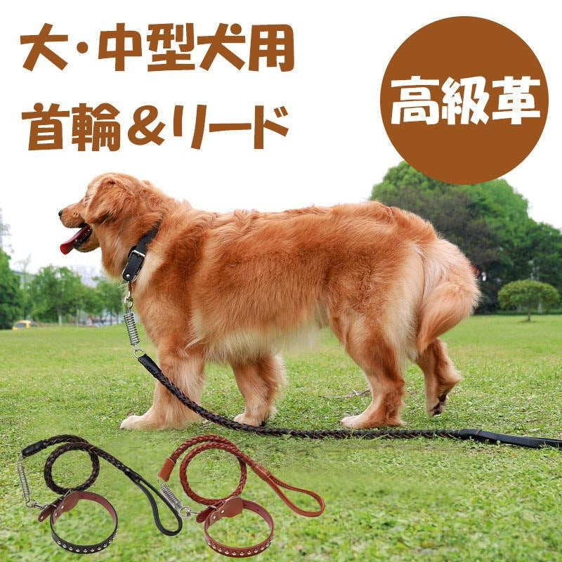 犬用 首輪 リード 大型犬 中型犬 ペットリード 革 レザー メタル スプリング付き 衝撃緩和 錆に強い 丈夫 頑丈 ちょっぴり かっこいい
