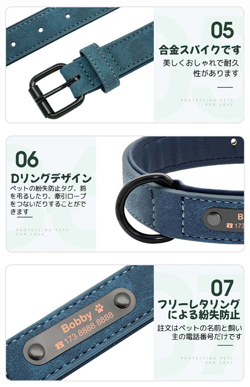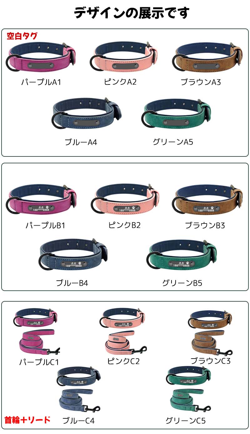 犬首輪 名入れ ネームタグ 革 小型犬 レザー おしゃれ 首輪 柔らかい 犬 ペット首輪 大型犬 中型犬 迷子札 IDタグ 犬の首輪 かわいい 安全