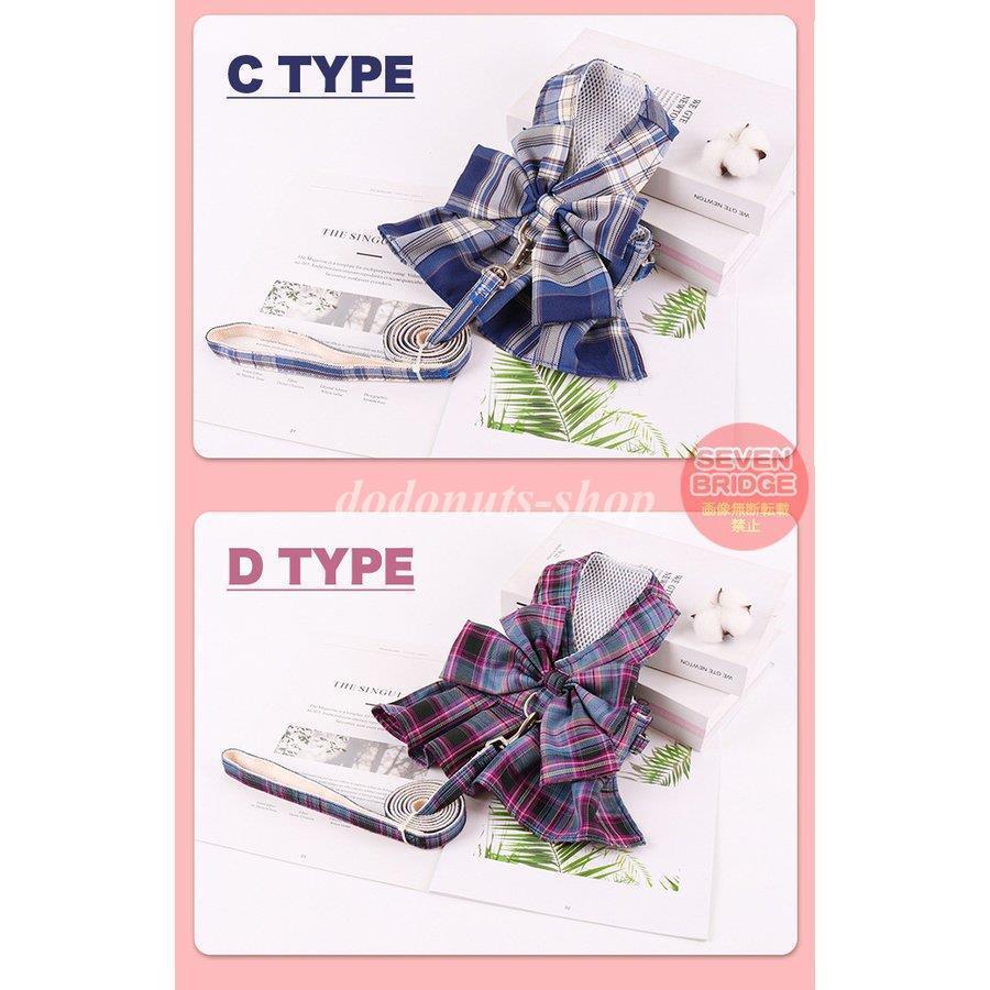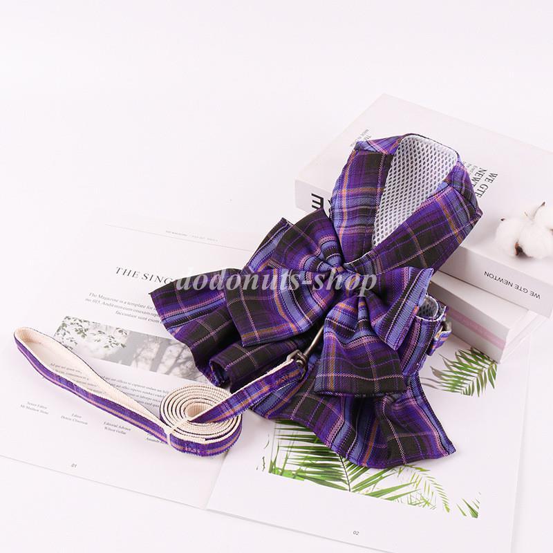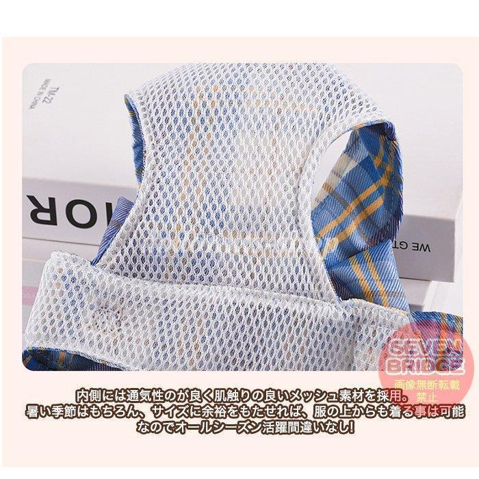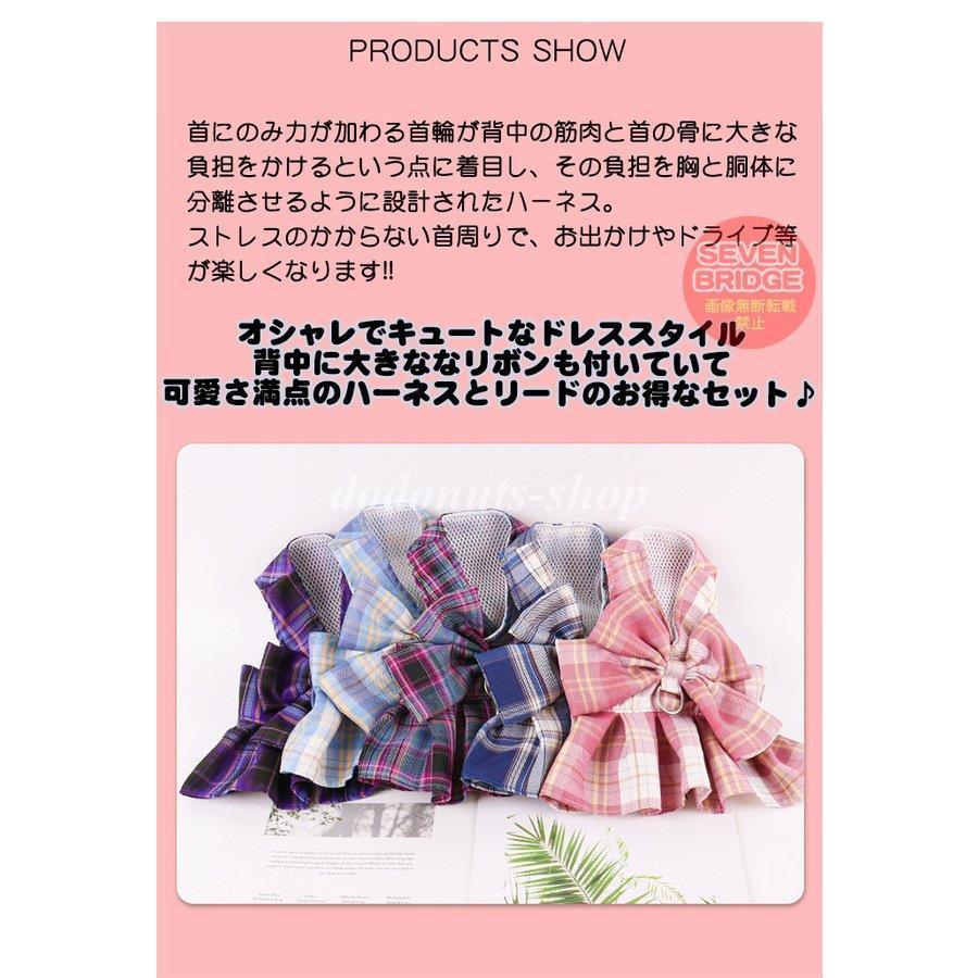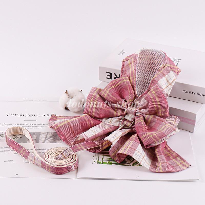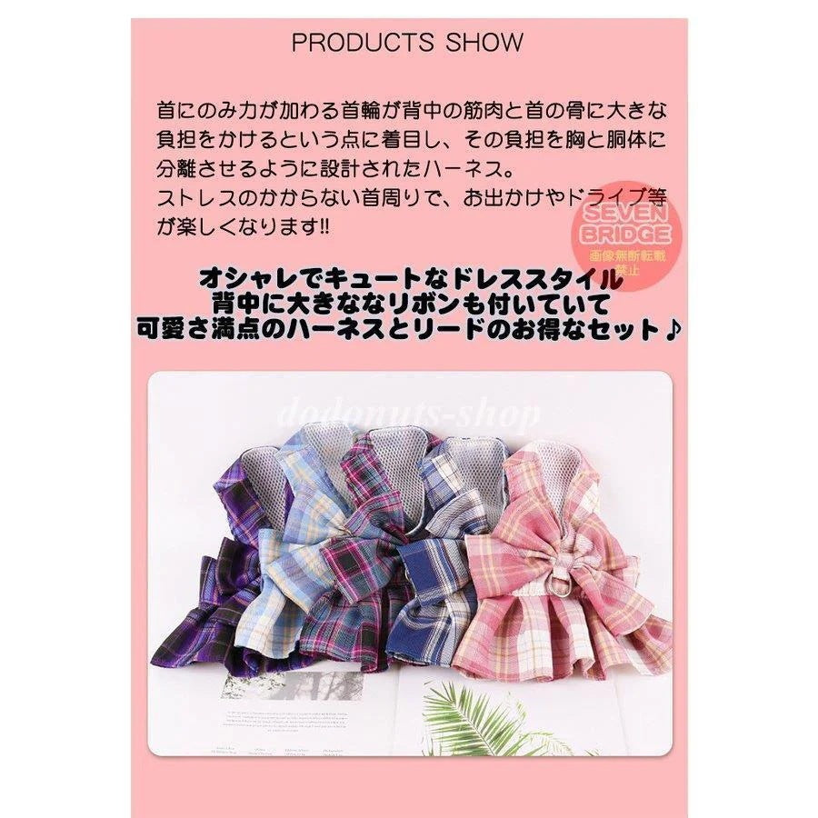犬 ハーネス リード 付 リボン チェック ウェアハーネス ペット 服 ワンピース 胴輪 キャット ドッグ