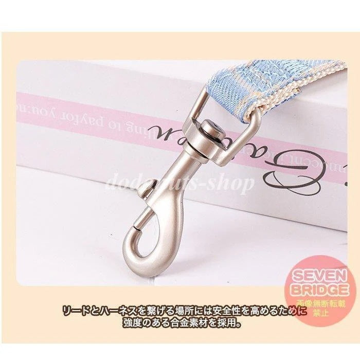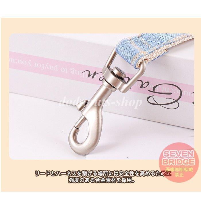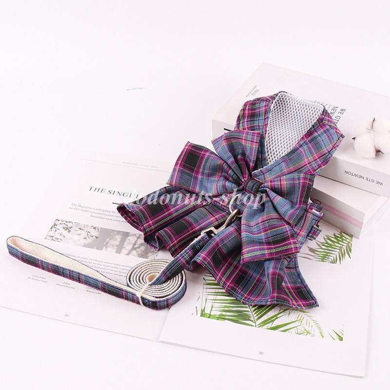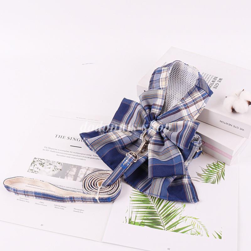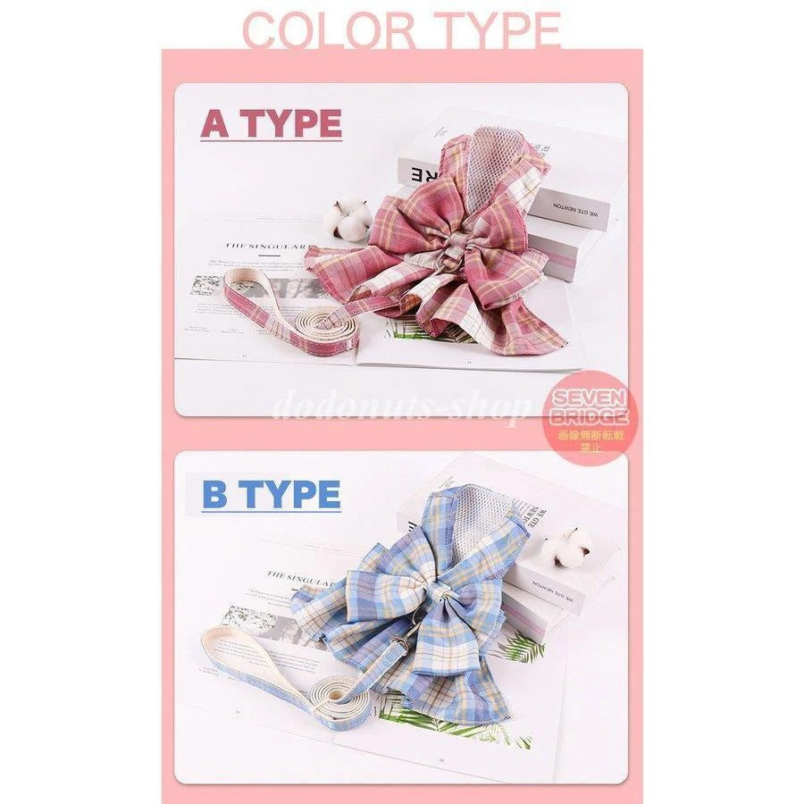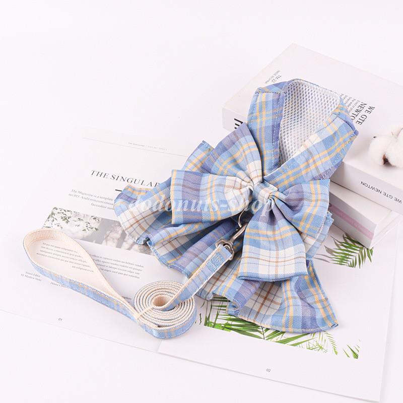 犬 ハーネス リード 付 リボン チェック ウェアハーネス ペット 服 ワンピース 胴輪 キャット ドッグ