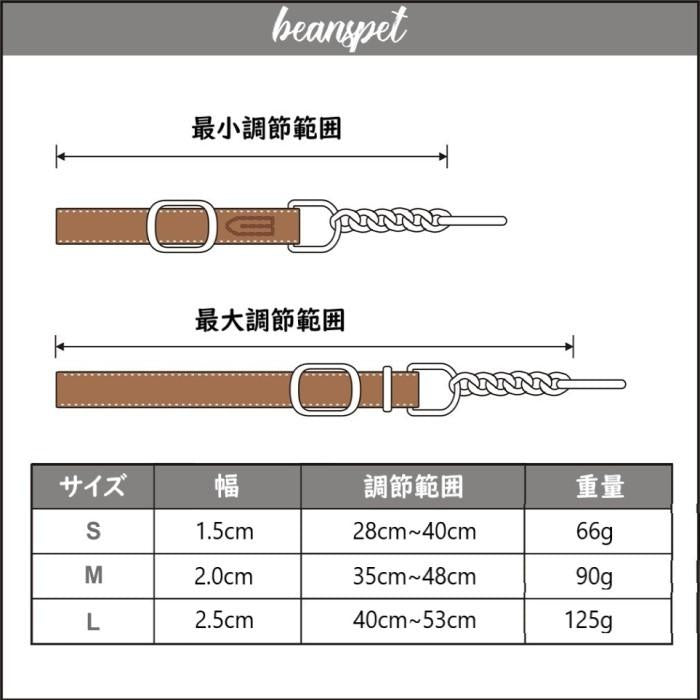 【トレーニング】ワンちゃんが引っ張ると、首輪部分が締まるため引張り癖があるワンちゃんにお散歩マナーを教えることにも役立ちます。なお、チェーンの音で愛犬の引張り癖を和らげる効果がございます。