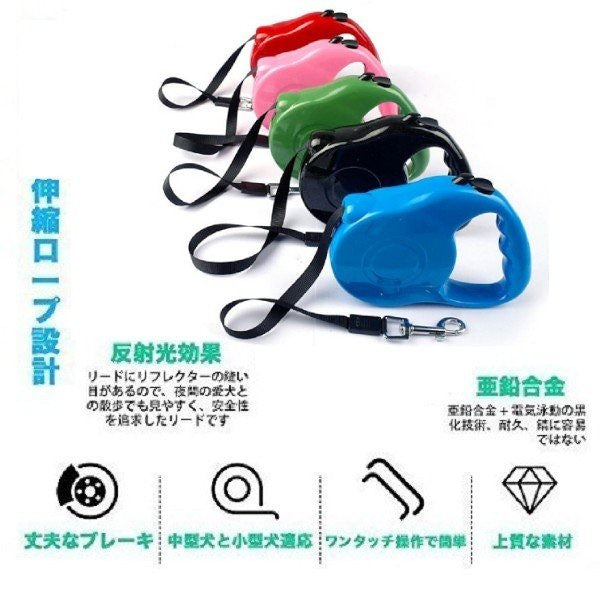 犬 リード 伸縮 5m 猫 犬用リード ペット用リード おしゃれ 自動巻き 犬用伸縮リード 巻き取り