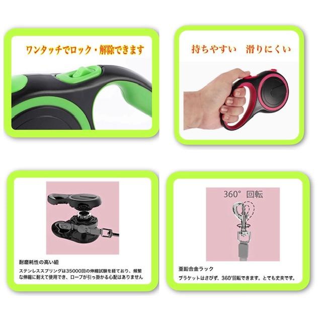 【片手操作】ワンタッチで、リードの伸びやストップやロックなどが片手で操作可能です。自由に伸縮できるので、楽に操作できて安全にコントロールすることができ、お年寄りや子供にも簡単に使用できます。