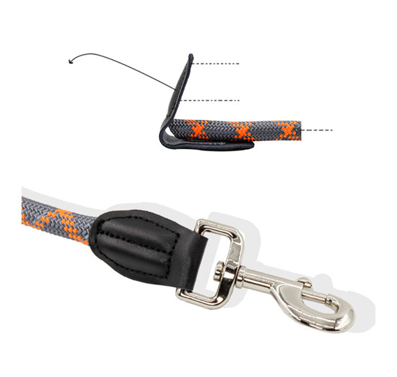 高密度ナイロンのロープを編込んで作られた強度が非常に高く安全性を高めたリードで、
