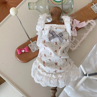 [犬 服]犬 洋服 ins人気商品 ペット服春夏新作レースホルターショート犬猫ホームウェア