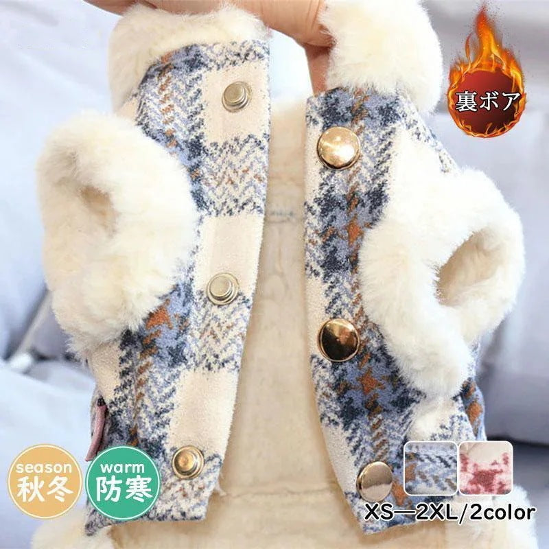 犬 服 ペットウェア 秋 冬 裏ボア 裏起毛 チェック柄 保温 防寒 あったか ドッグウェア 小型犬 中型犬 ペット用 愛犬 猫 旅行 お散歩