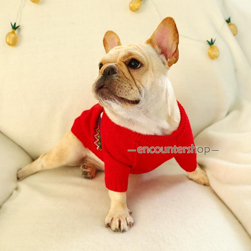 犬 服 犬の服 ペット服 フレンチブルドッグ服 ドッグウェア セーター ニット クリスマス サンタ柄 秋冬 保温防寒 小中型犬 メール便対応