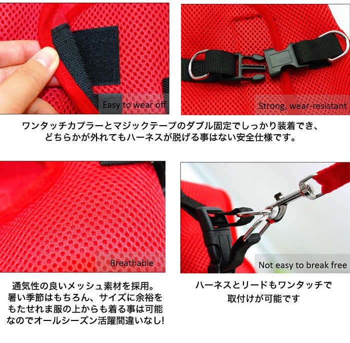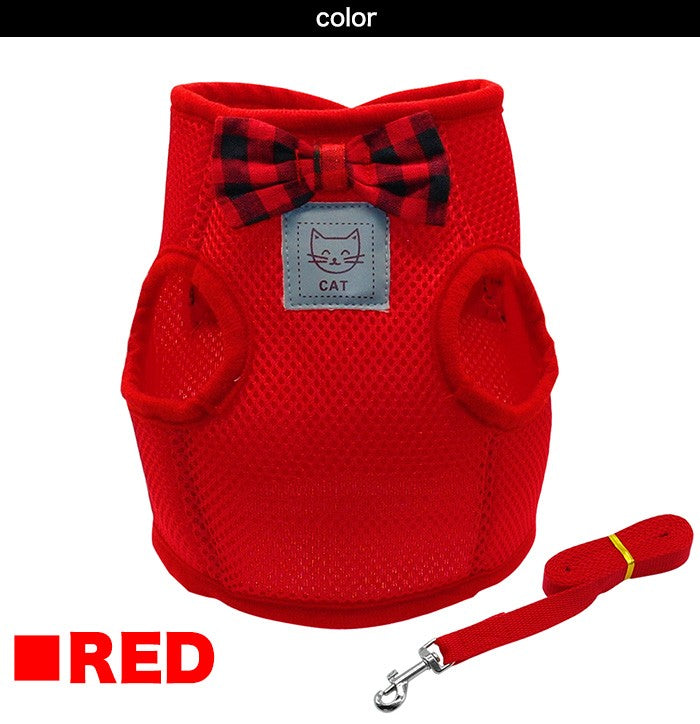 犬 猫 キャット ハーネス ドッグ 胴輪 メッシュ ウェアハーネス リーシュ リボン ペット リード