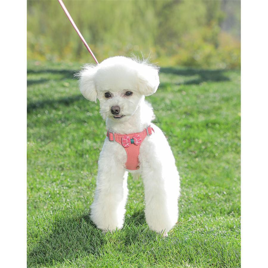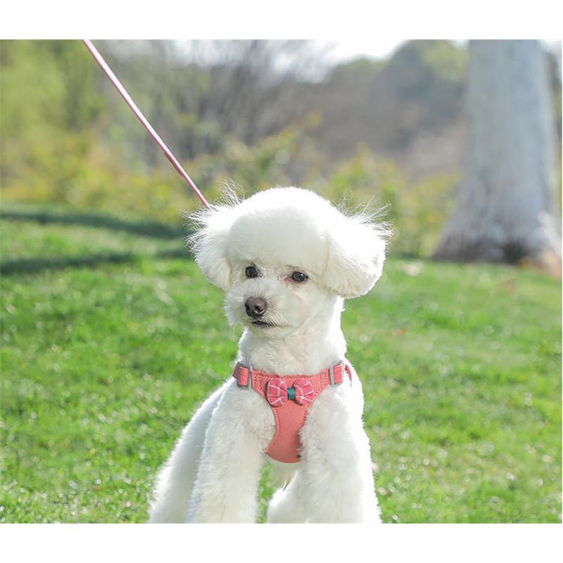 犬 猫 ハーネス リード 胴輪 首輪 2点セット 小型犬 中型犬 脱げない リボン付き 簡単装着 ベスト 抜けない 衝撃吸収 幼犬 うさぎ お散歩