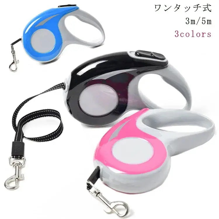犬 猫 リード 散歩 3m 5m 型犬 小型犬 お散歩グッズ ワンタッチ式 伸縮可能 犬用リード 猫用リード 自動巻き戻し式 ワンタッチロック 3メートル 5メートル 犬お散歩