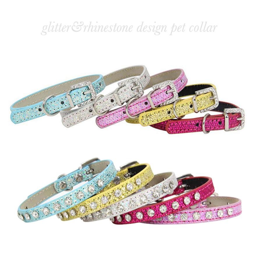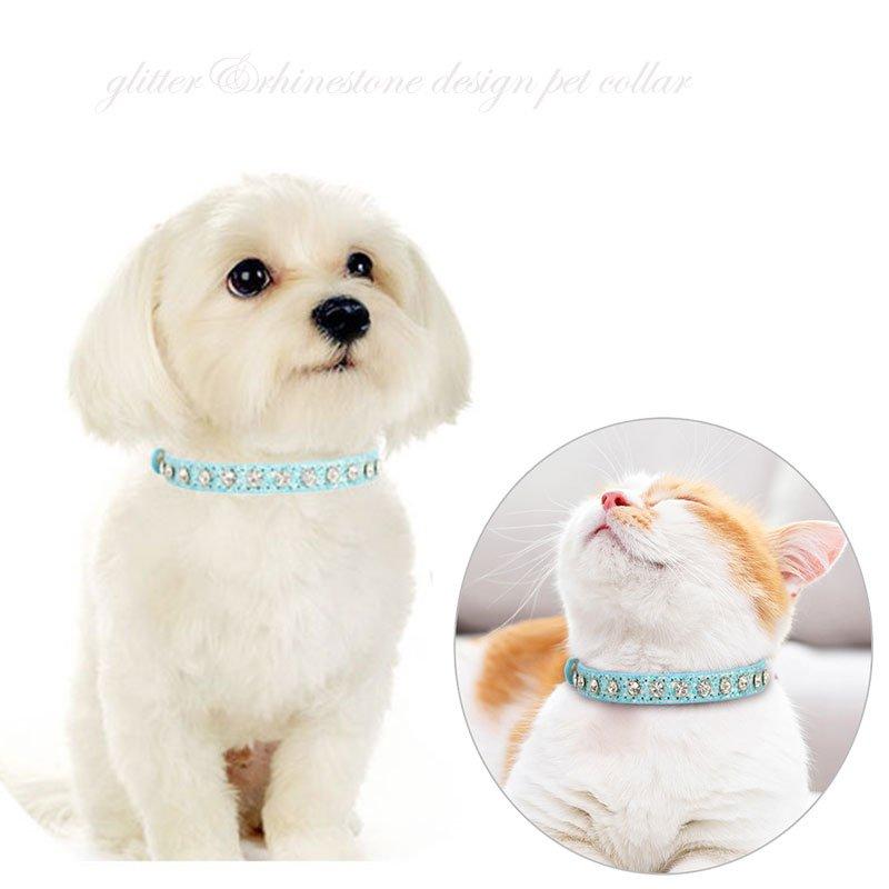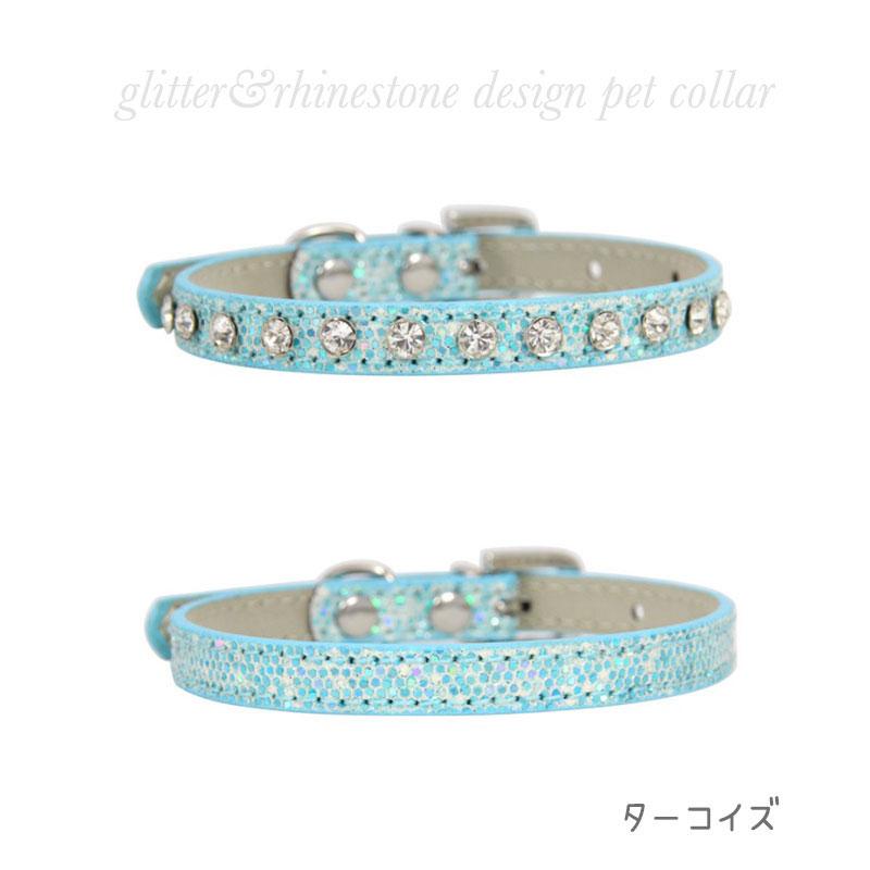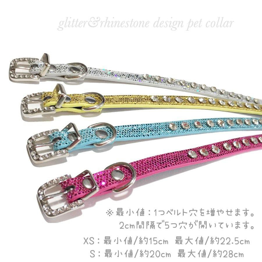 ★ キラキララインストーン&グリッターデザインがCuteな♪猫,小型&中型犬用レザー首輪です♪