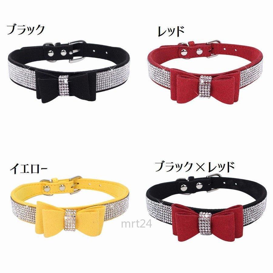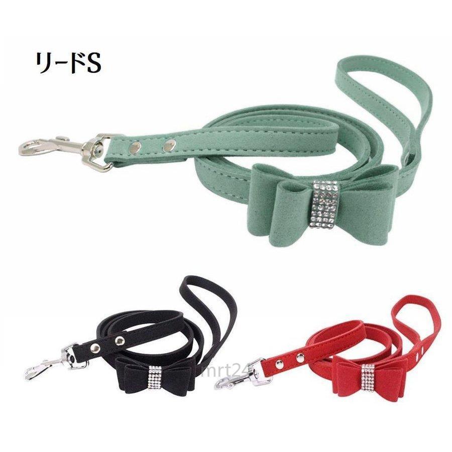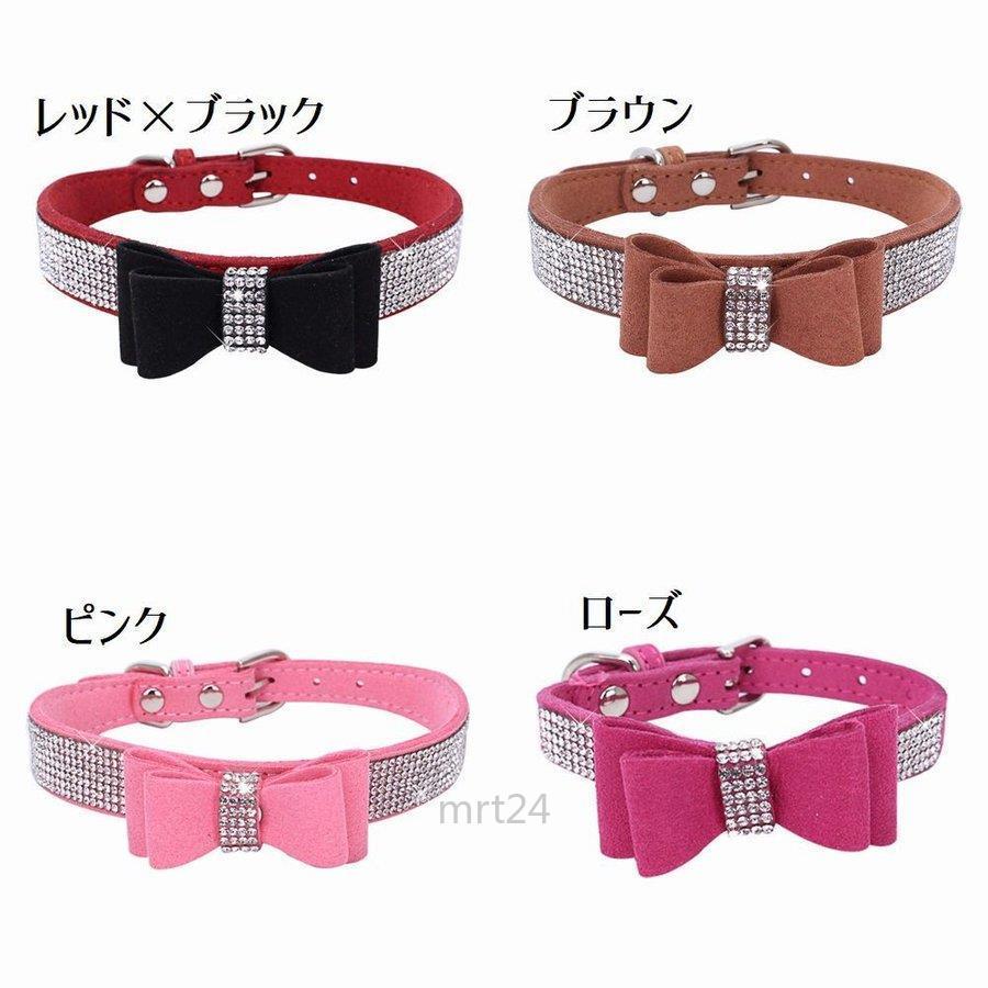 犬用首輪 猫用首輪 リード 犬用 猫用 小型犬 中型犬 首輪 ベルト スエード調 ラインストーン リボン キラキラ 無地 バイカラー お散歩 散歩 お