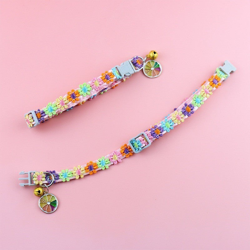 鈴付き お花の首輪は存在感◎