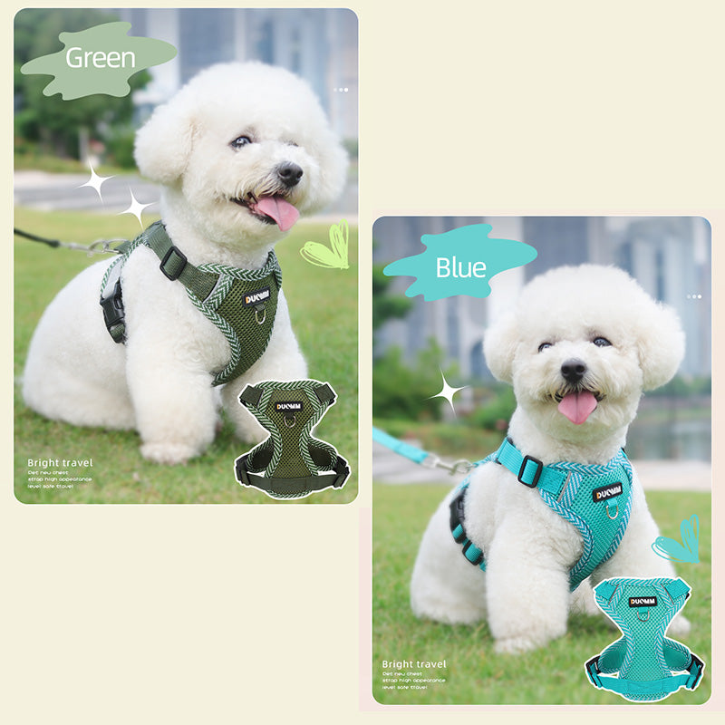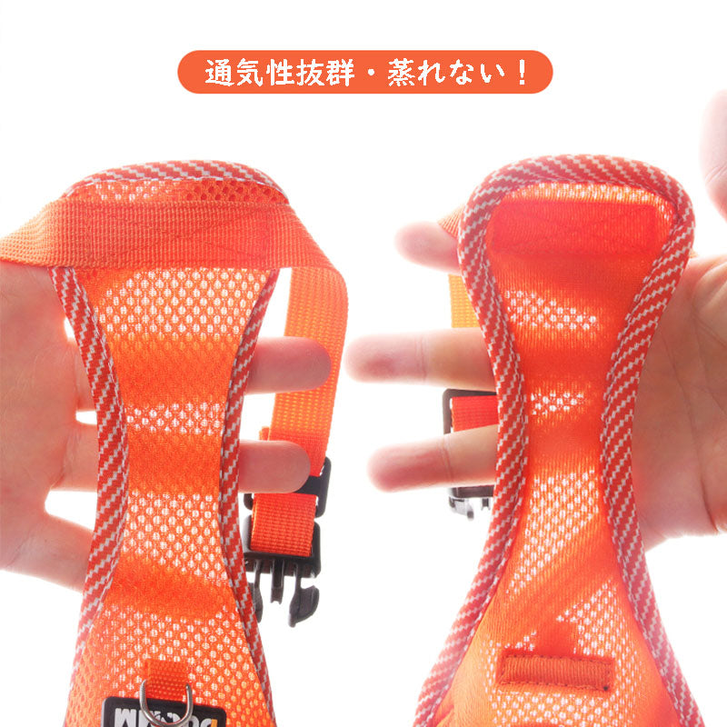着脱簡単 4カラー 犬ハーネスリードセット 通気性抜群 春夏用最適 抜けない 蒸れない メッシュ素材