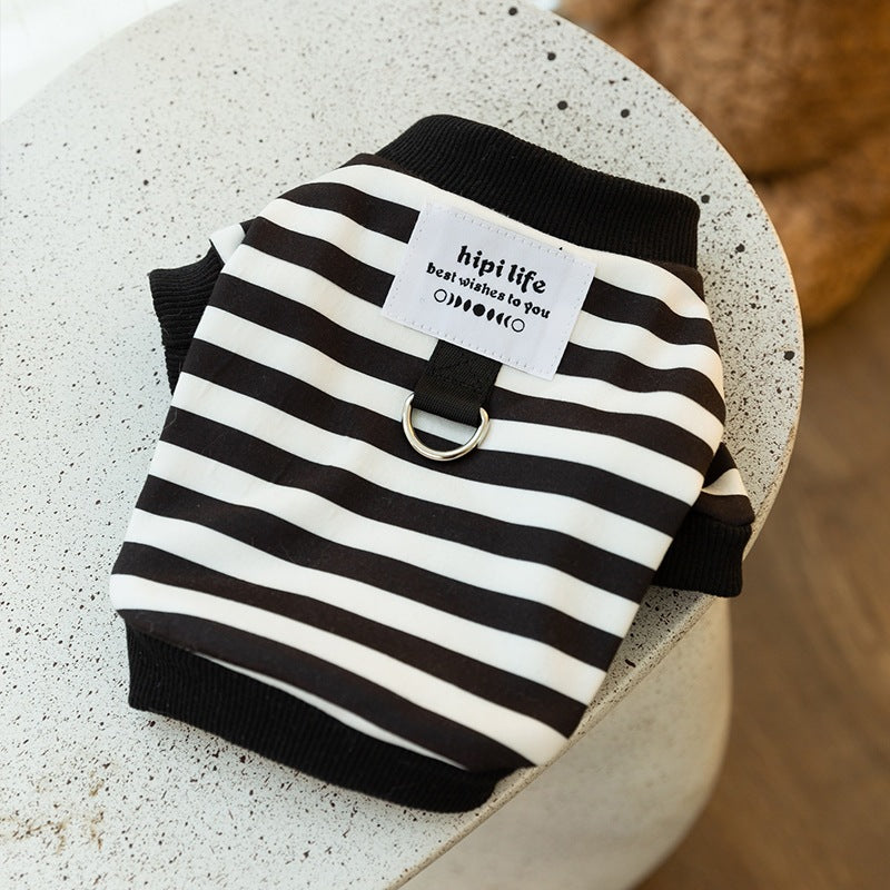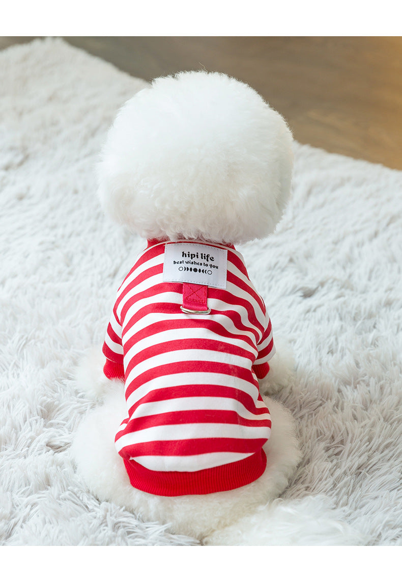 秋と秋 犬 簡単な しま模様 牽引可能な金 セーター着 カジュアル 両足 テディ 博美 ペットの服