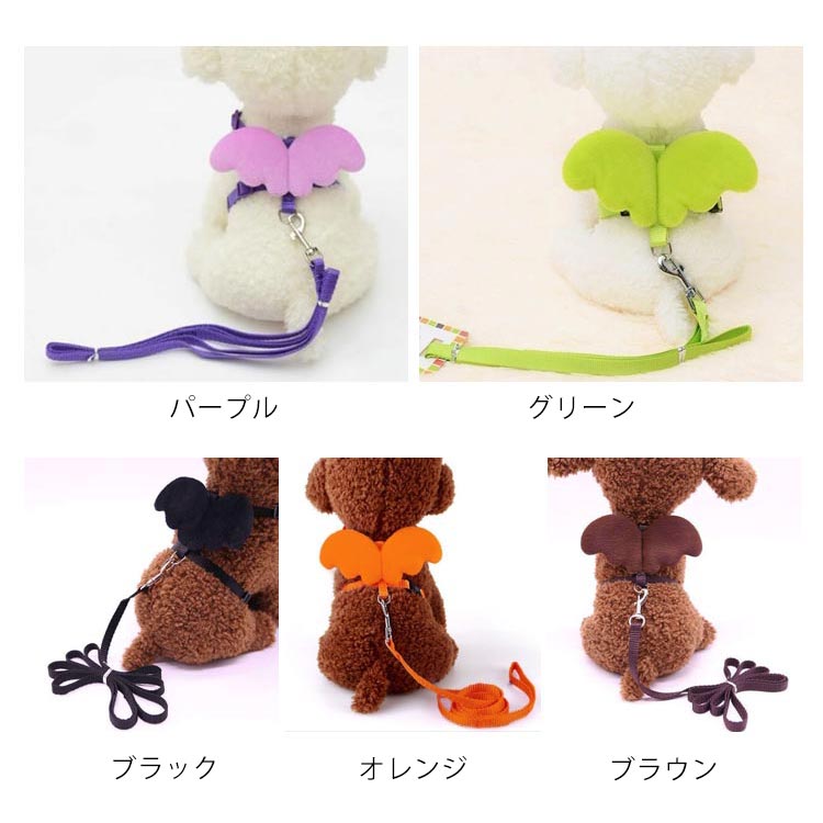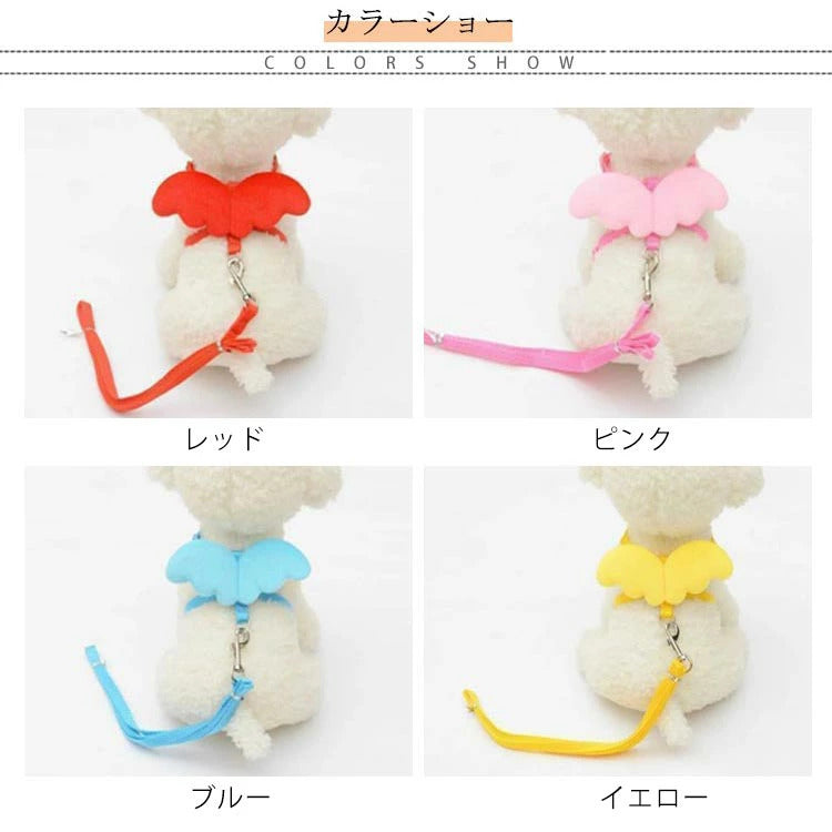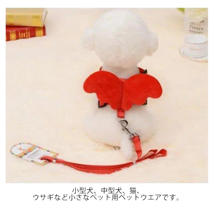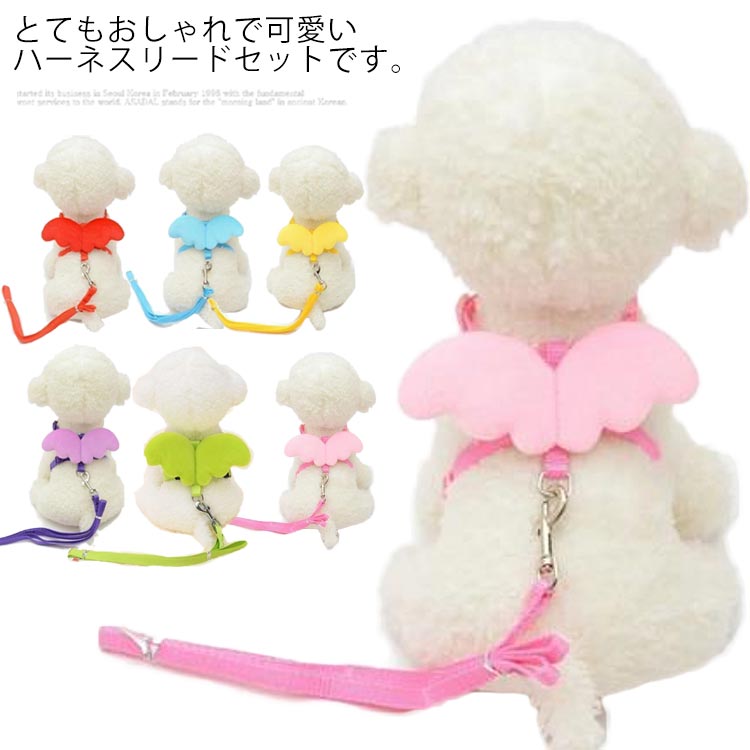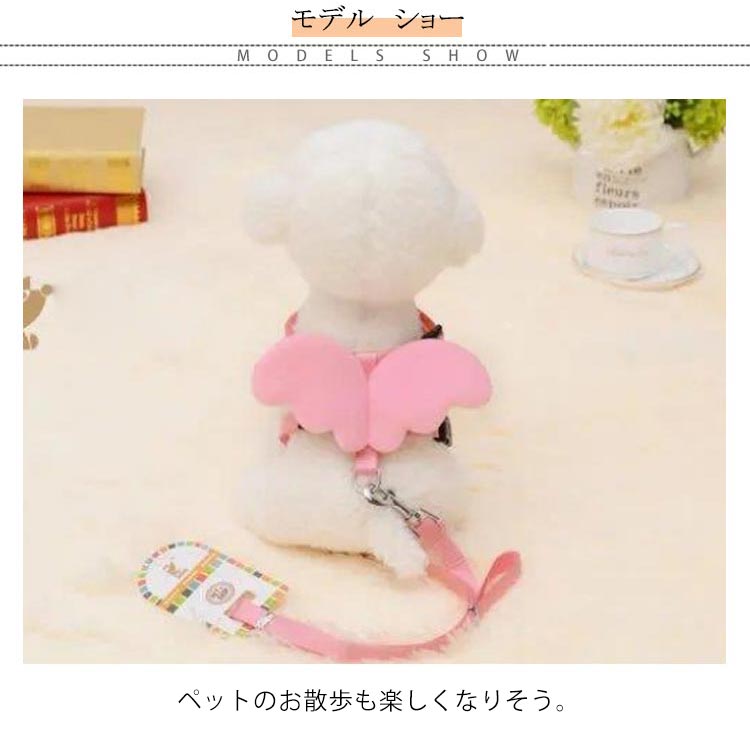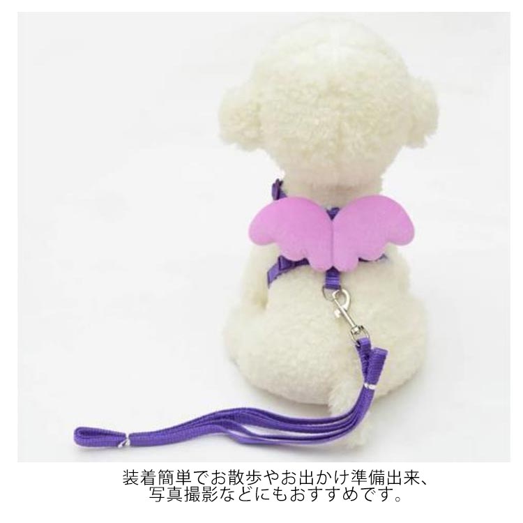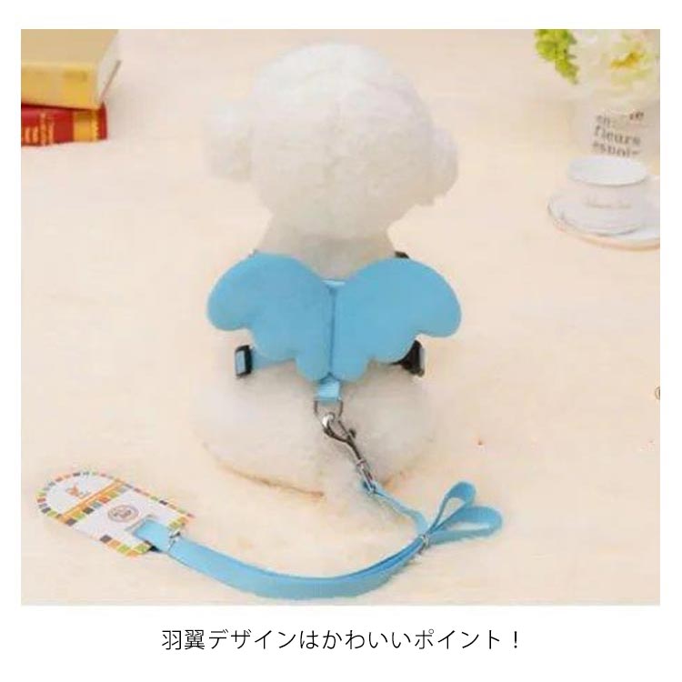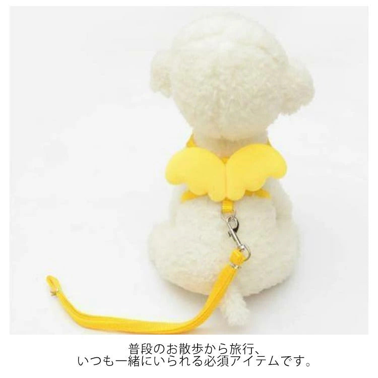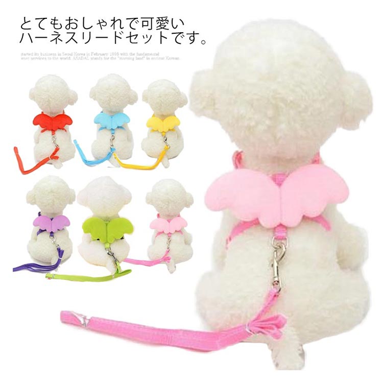羽翼付き 犬 ハーネス リード 2点セット 小型犬 ペットハーネス 羽付き 犬用 脱出防止 胴輪 お出かけ 散歩 ペット用品 記念写真 かわいい オシャレ 着脱簡単