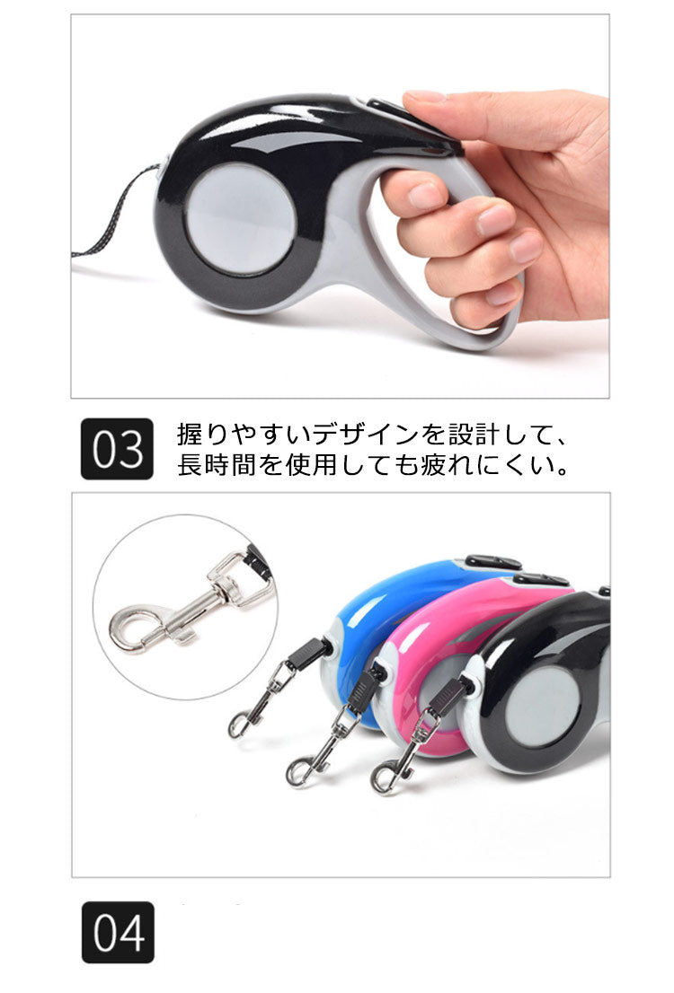 3M/5m伸縮できるペットリードスムーズな伸縮で、愛犬が自由に走ることができる伸縮リードです。ワンちゃんの首の怪我や人の腕にかかる負担を軽減し、より安全にお散歩を楽しめるよう設計されています。先端には簡単に取り外しができるナスカンクリップ。高品質のナイロン編み、手触りがよく、耐久性もより高いです。握りやすいデザインを設計して、長時間を使用しても疲れにくい。シンプルなデザインは男性にも女性にも馴染みやすいです。