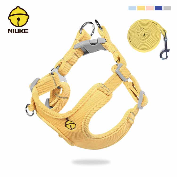 スタイリッシュなおしゃれなデザインのハーネス&リードセットです。立体構造設計なのでペットの首から胴回を優しくホールドします。調整可能でとても着やすくて、抜けにくいデザインです。柔らかな生地を使用し、優しく包み込む、軽くて通気性があります。バックルは丈夫で、安全性が高く、耐久性もいいです。
