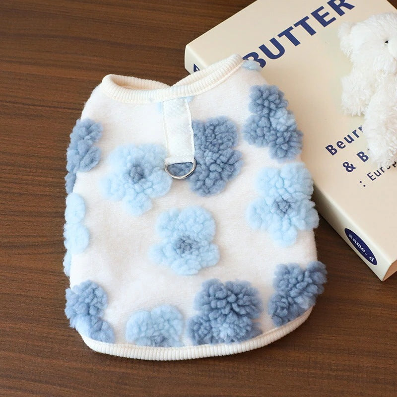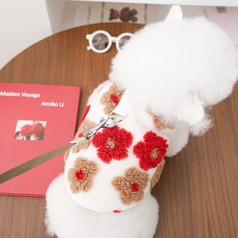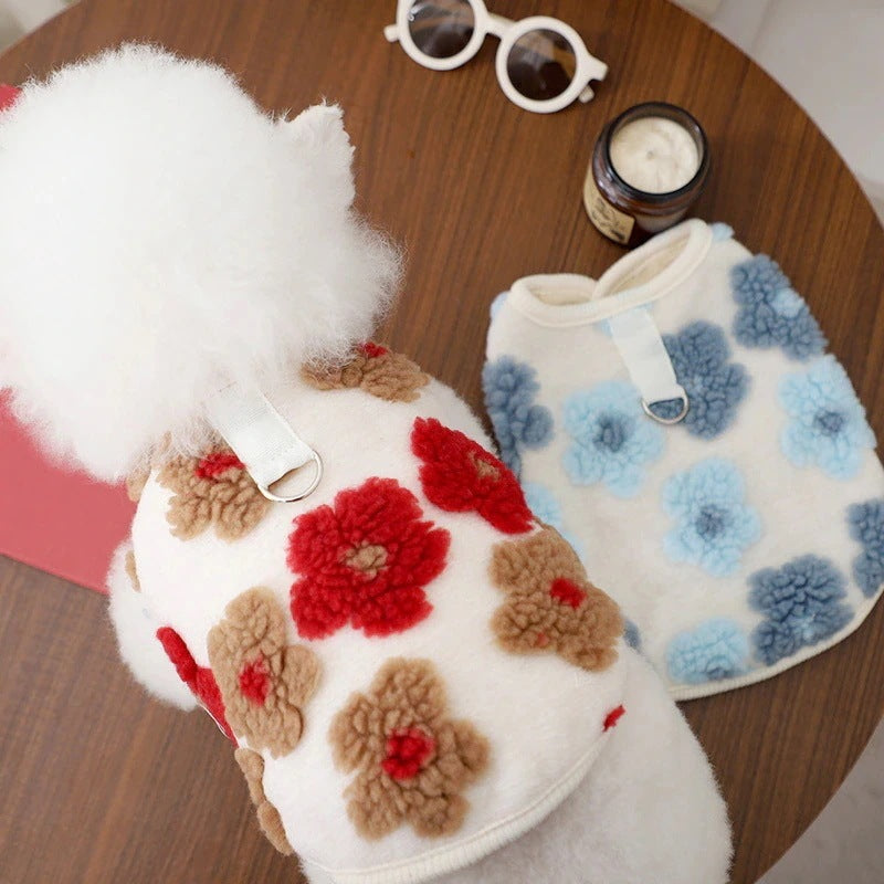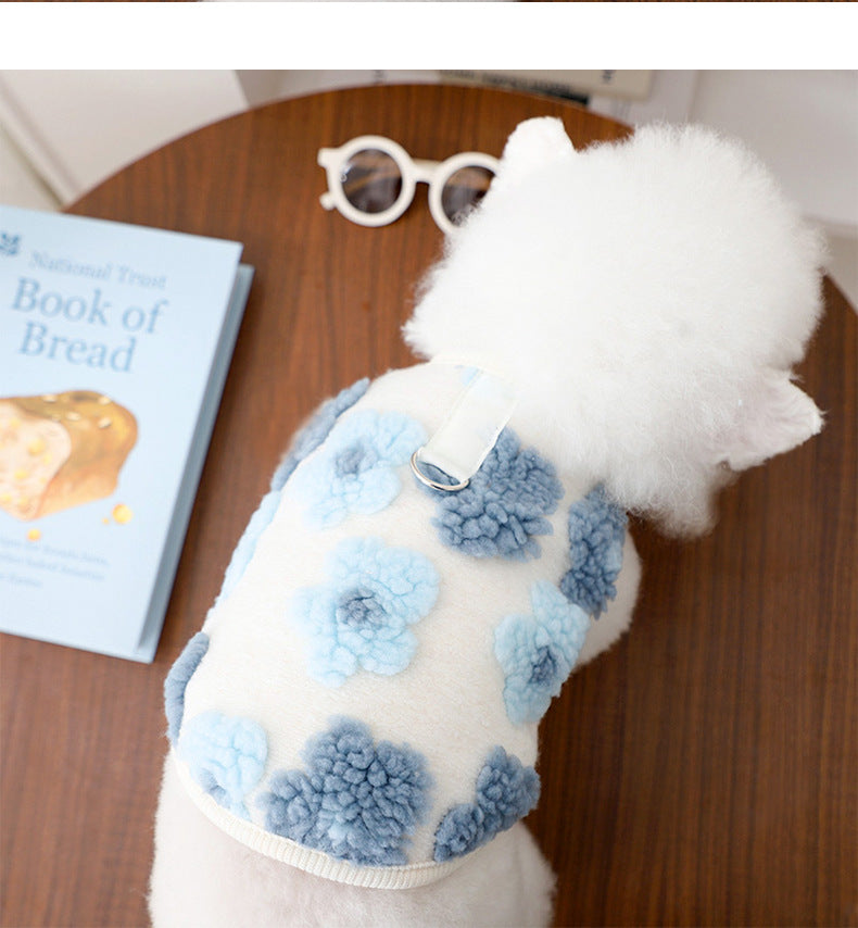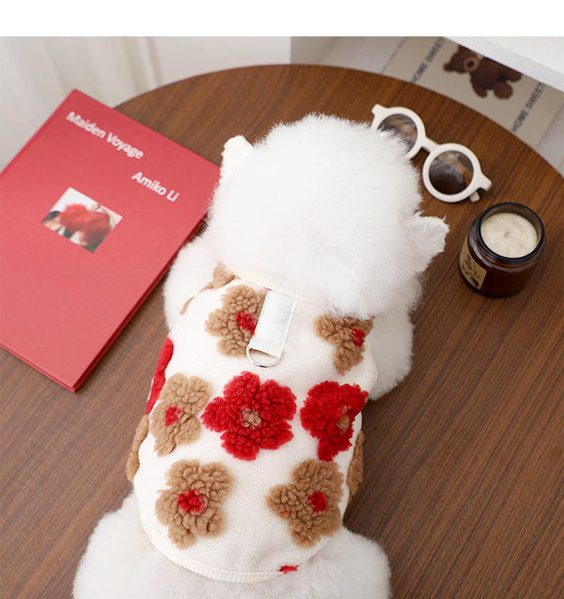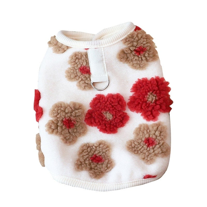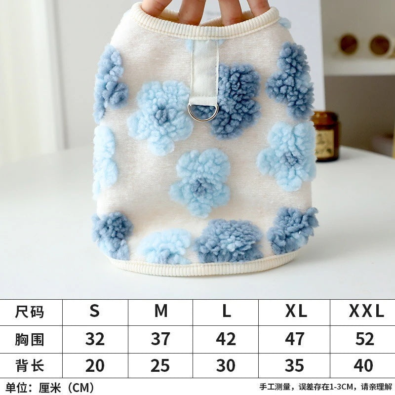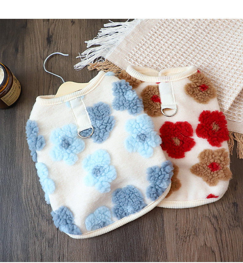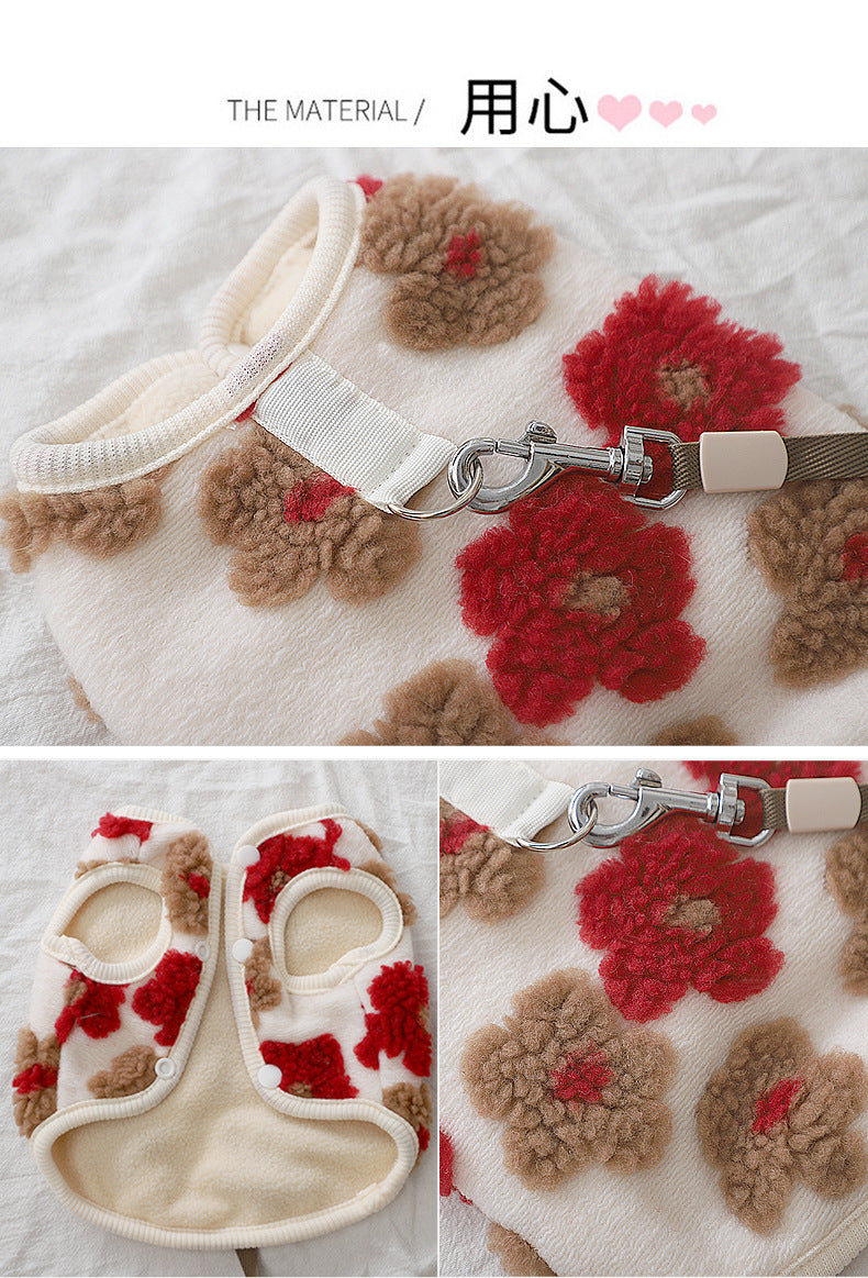 防寒着 人気犬の服ペットベスト冬暖かい綿の服立体花フリースコートノースリーブ