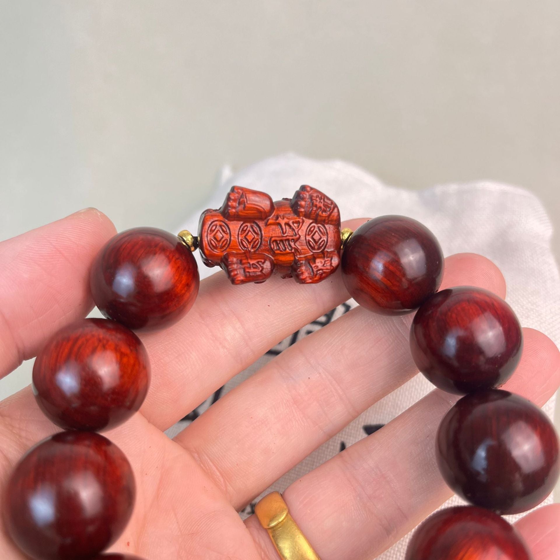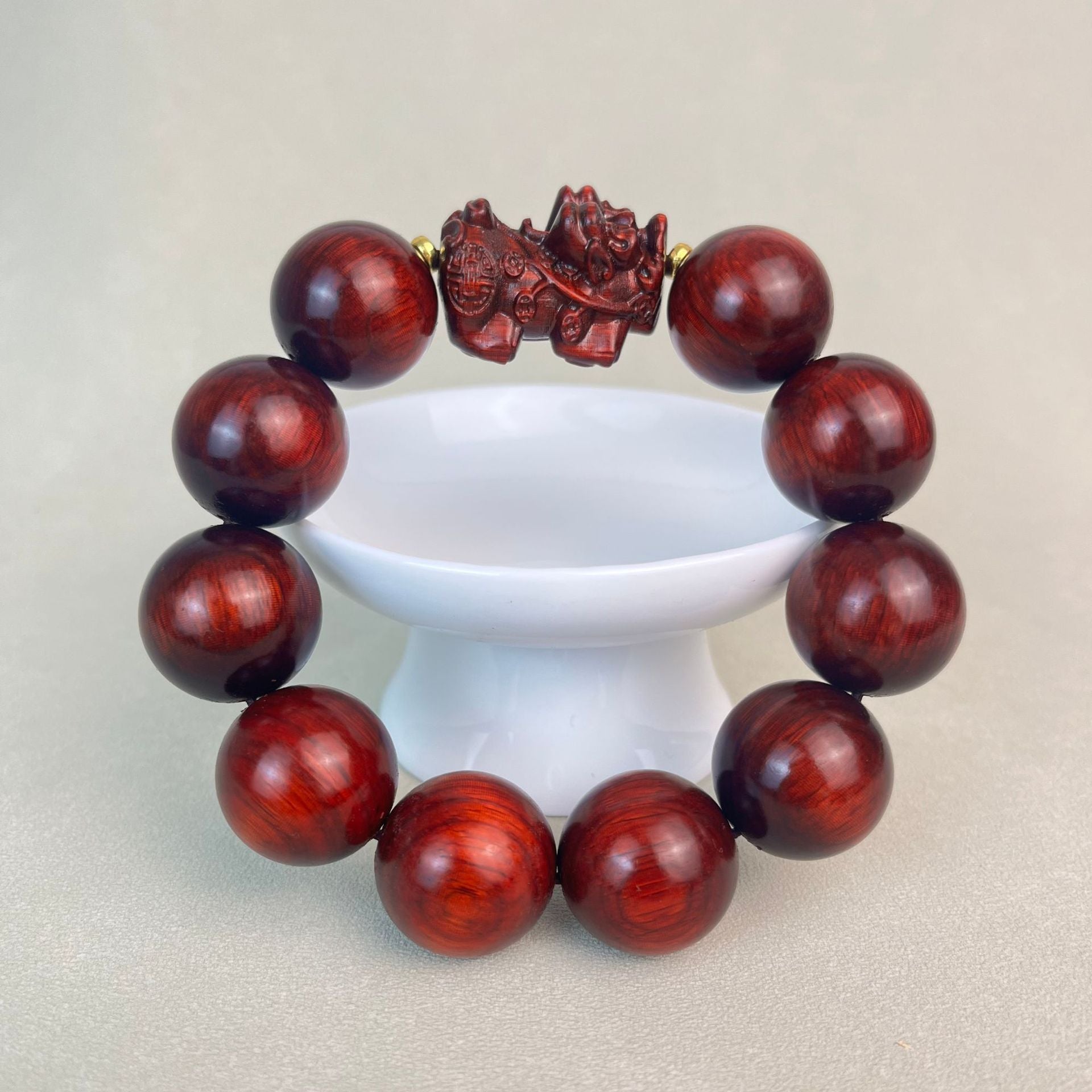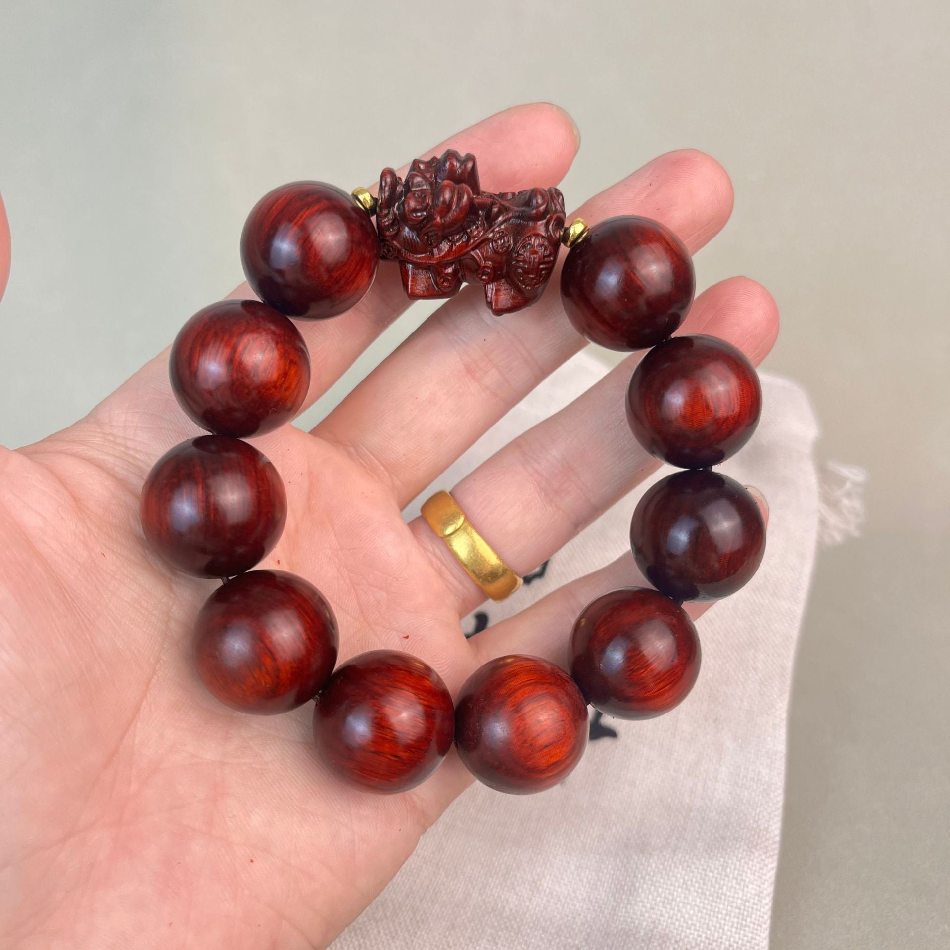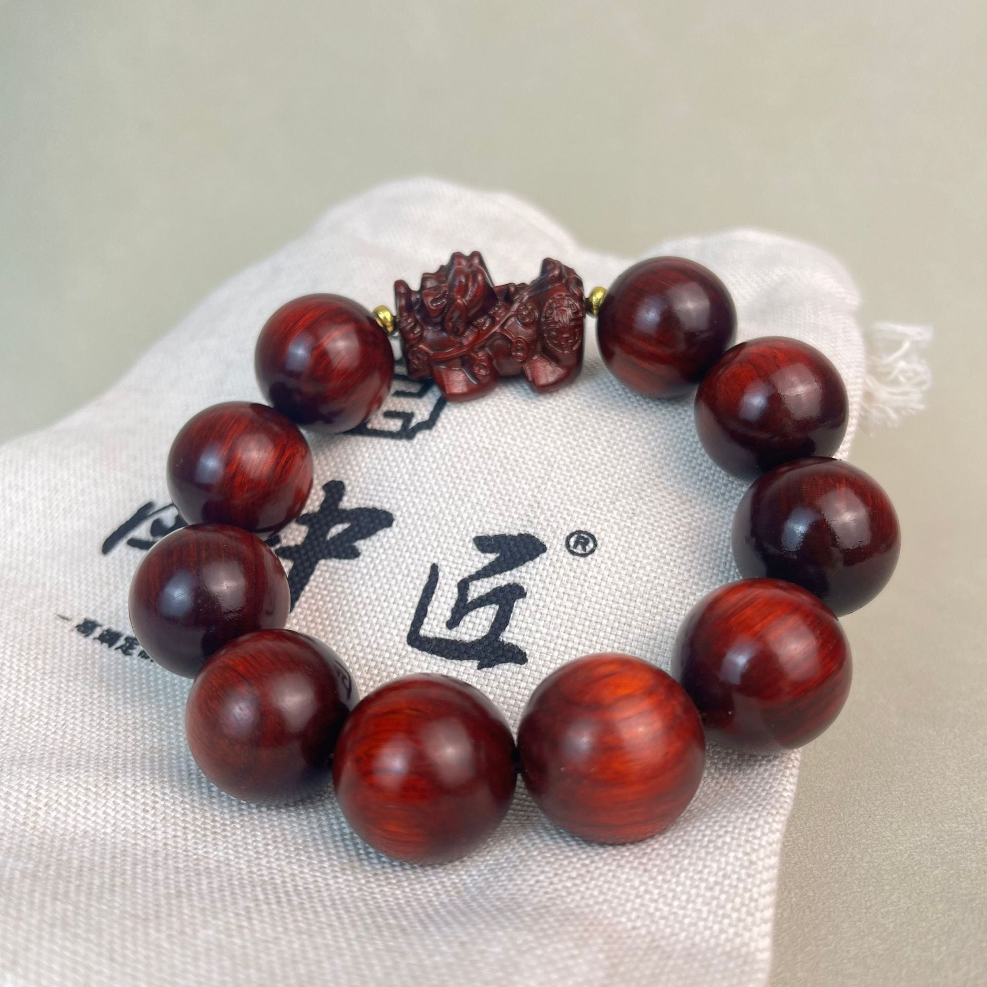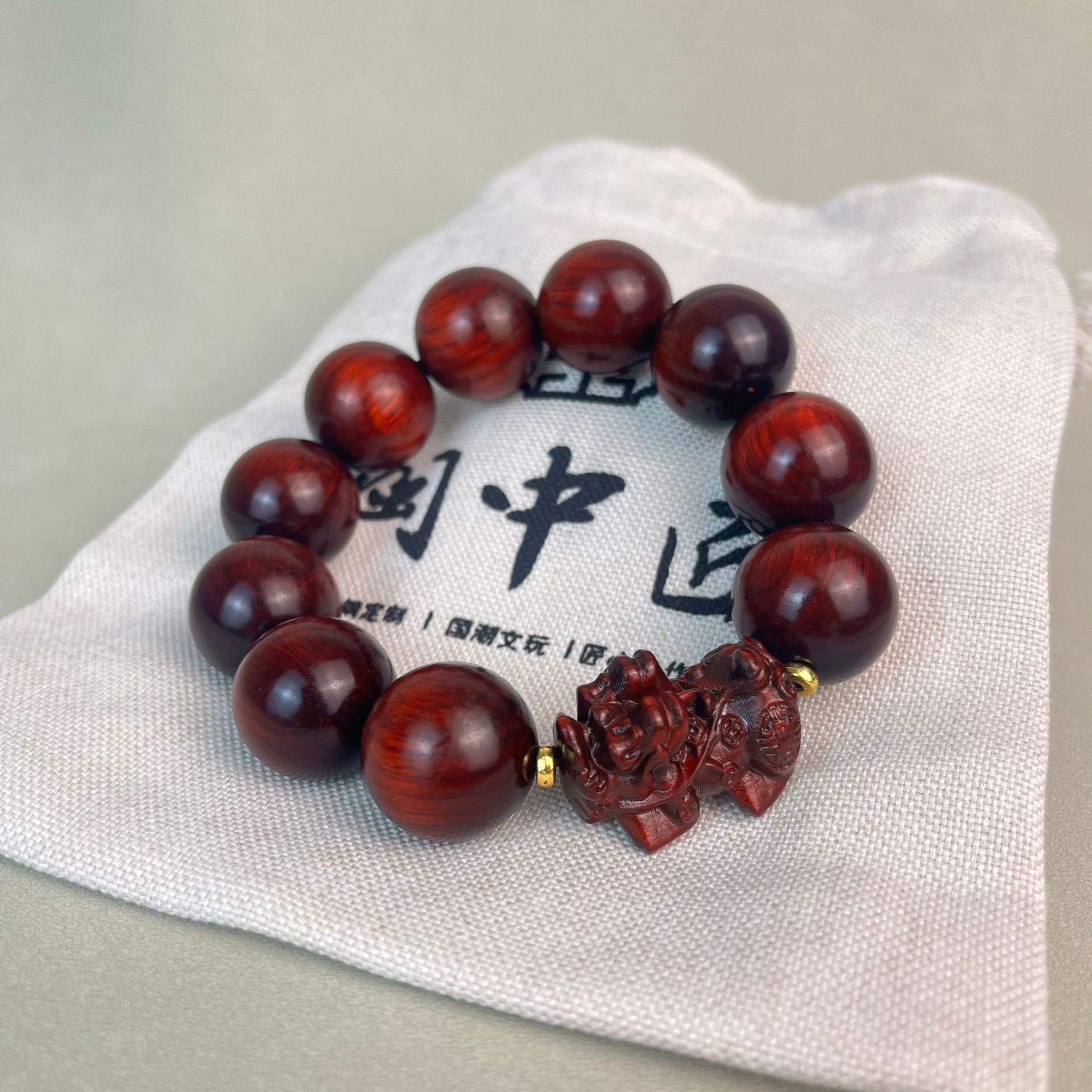 非洲小叶紫檀2.0木雕刻貔貅血檀手串复古风男女简约文玩盘玩把玩