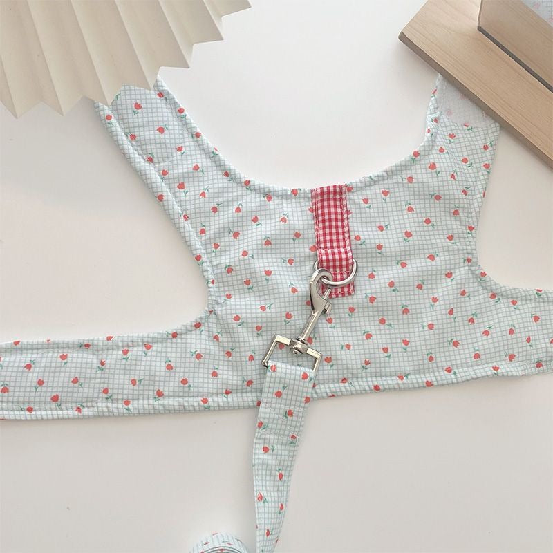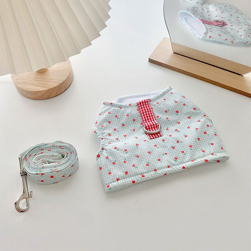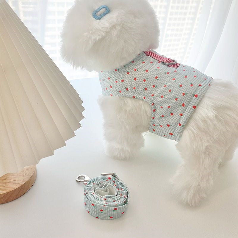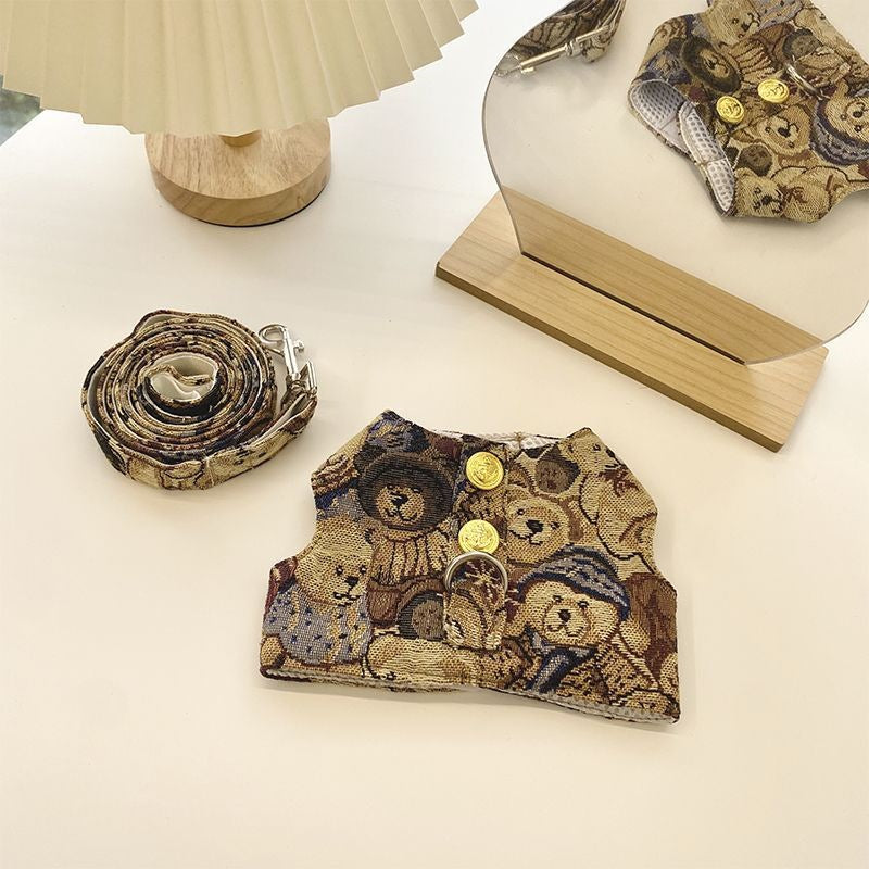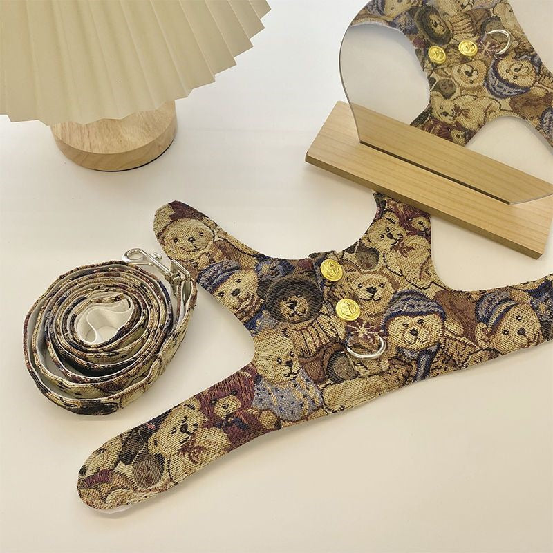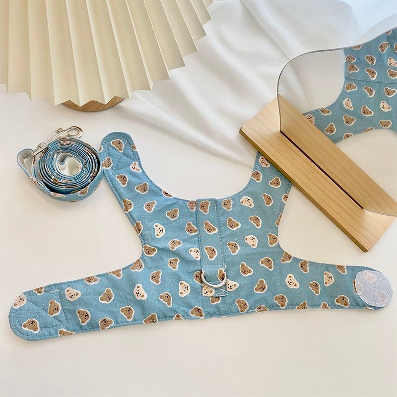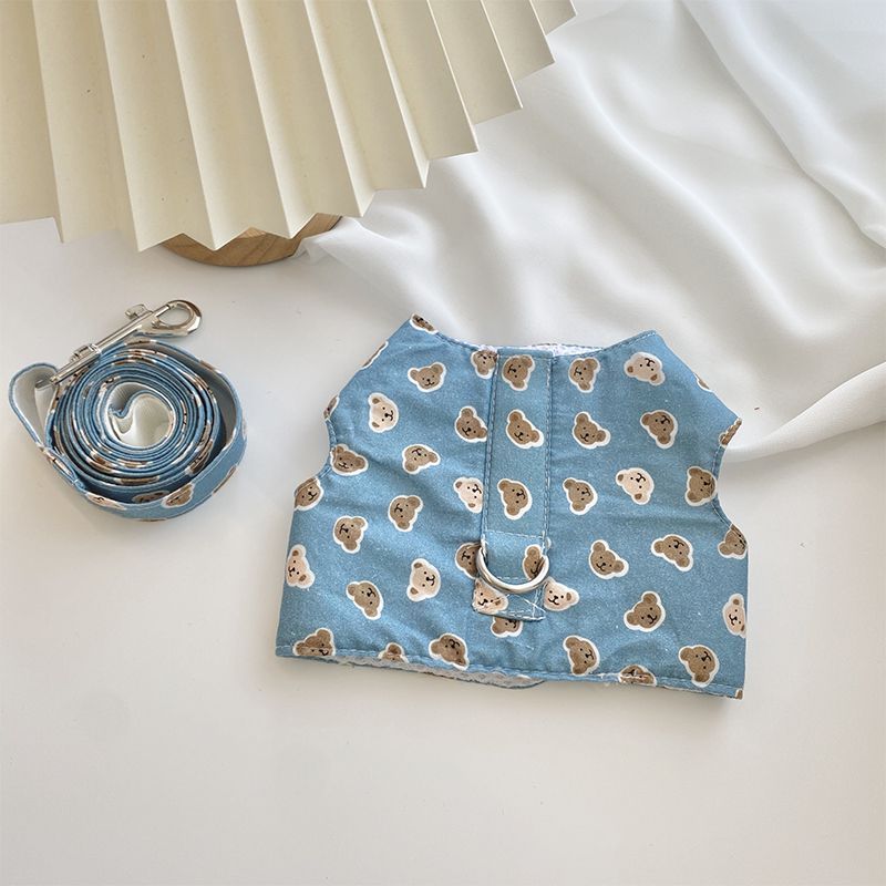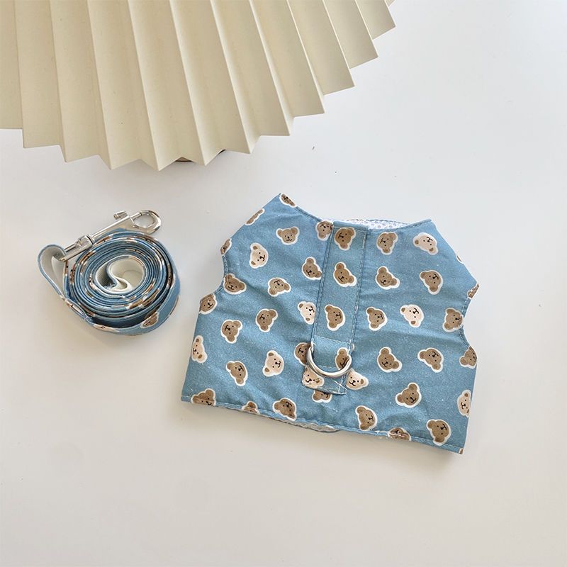 韓国の純綿のかわいいストライプの熊の胸のペットの牽引縄は犬のテディの熊のセットを散歩します メガ割ワンピースパンツトートバッグ