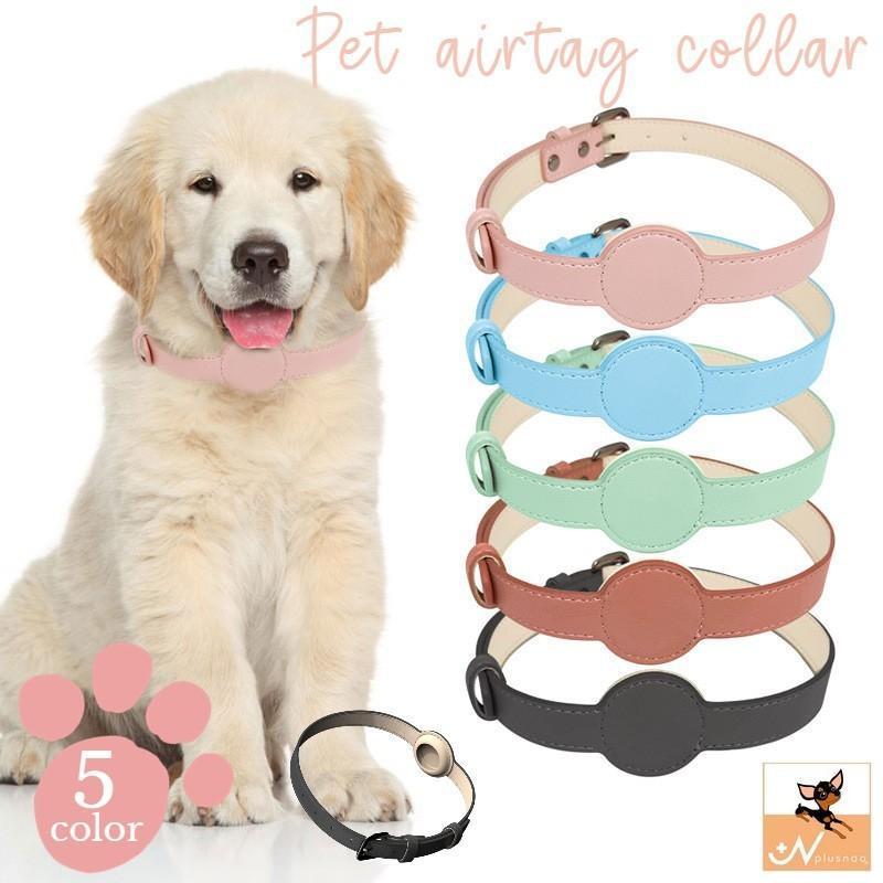 首輪 ペット用 犬用 猫用 AirTagケース付き ベルトタイプ エアタグケース付き レザー調 迷子防止 紛失防止 軽量 無地 シンプル かわいい イ