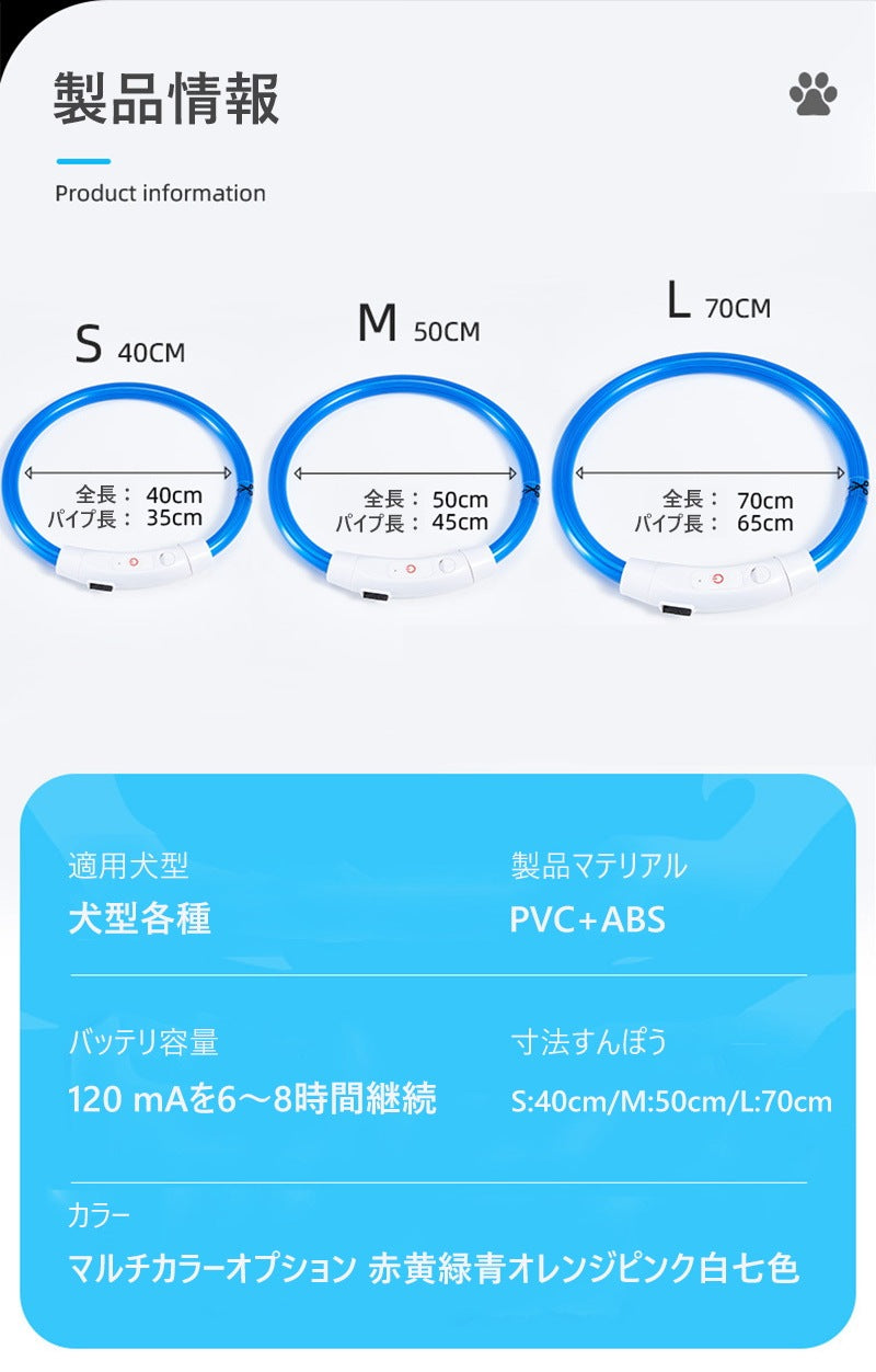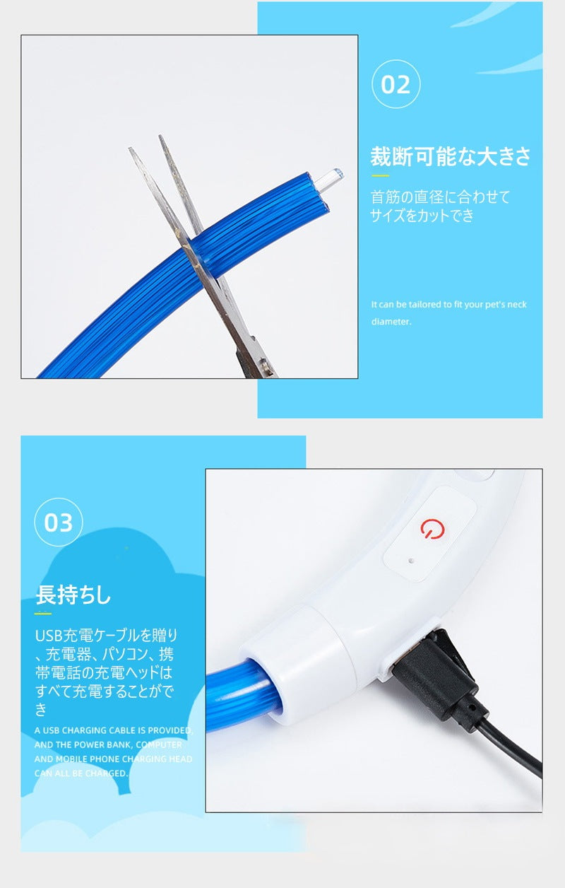 首輪 犬 おしゃれ 小型犬 中型犬 大型犬 光る首輪 犬用 LED ライト USB充電式