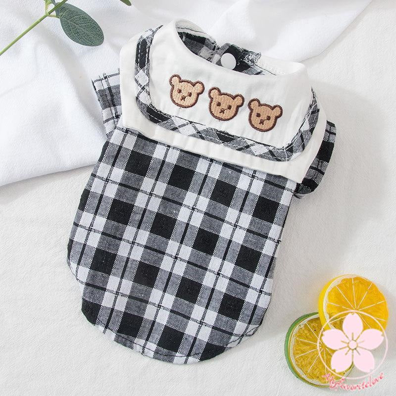高級な質感 ペット 服 安い犬 春 夏 秋 ギンガム チェック ワンピース くまちゃん 柄 えり かわいい 可愛い ハイブランド 猫 ドッグウェア