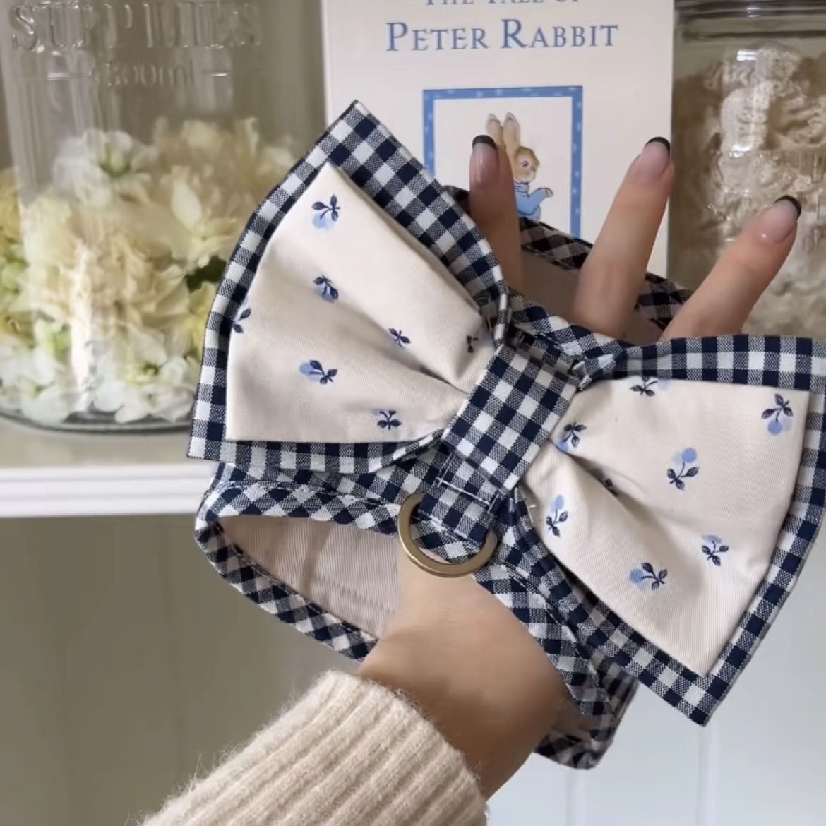 ペット外出胸背中牽引紐新品超萌え蝶結びins格子縞アウトドア犬猫ベスト式