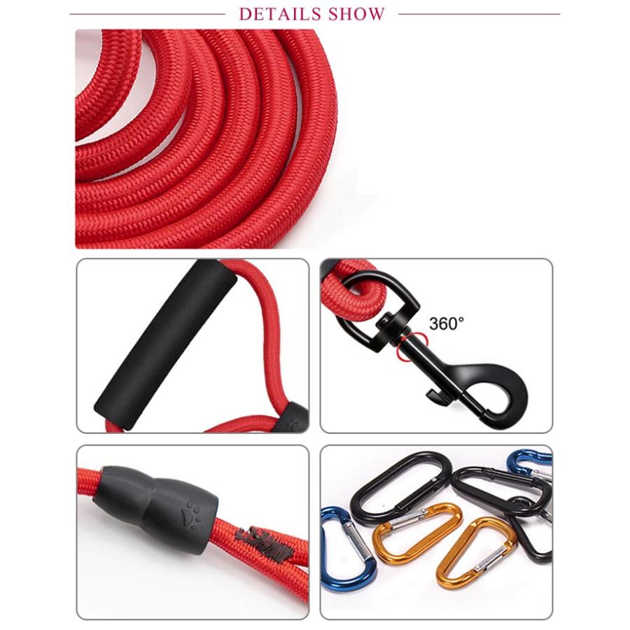小中型犬用!多機能!絡みにくい丸ロープリード。 太さが8mmもある登山用にも使われるロープを使用した軽くて頑丈な犬用リードです!小型犬はもちろん中型犬でも安心。 持ち手部分には専用の柔らかくて滑りにくいカバーを採用しソフトなハンドルとなっています。力の強いわんちゃんに引っ張られても飼い主の手への負担を軽減してくれます。 機能性アップのロングリードで広場やレジャーでいっぱい遊べましょう! | |
