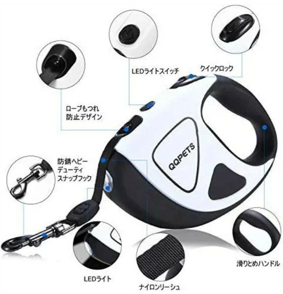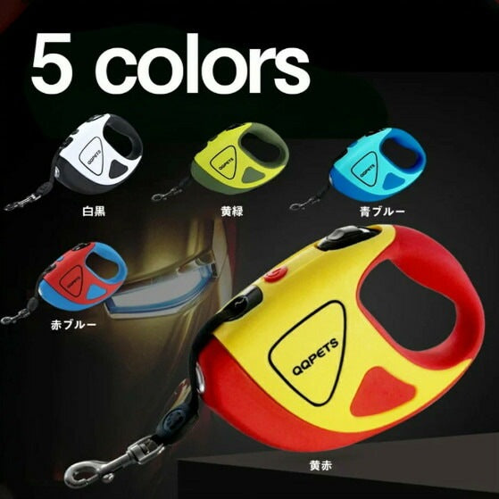 【3日以内に出荷】犬リードLED埋め込み式 犬リード 伸縮リード 犬用リード LEDライト付き 自動巻き 反射光 夜間散歩 長さ5m 荷重50kg 小 中 大型犬対応
