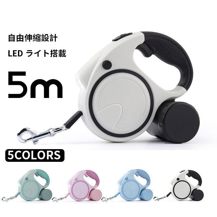 5m 夜散歩 犬 小型犬 自動巻き イヌ 伸縮リード 伸縮 ドッグリード 大型犬 光反射 首輪 ライト 雰囲気ライト リード 伸縮式 ロングリード ライト付き LED 軽い